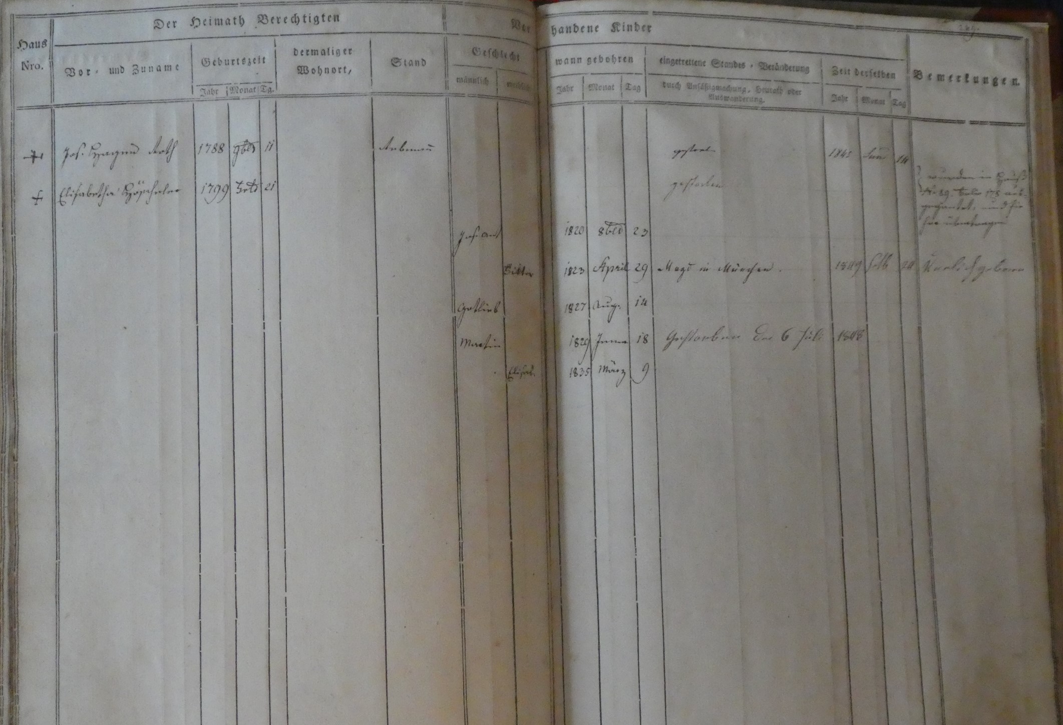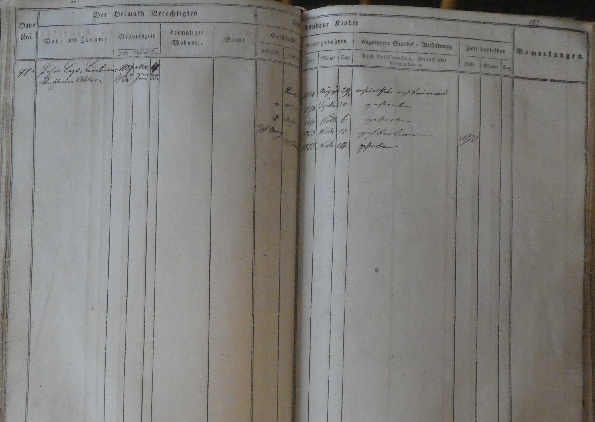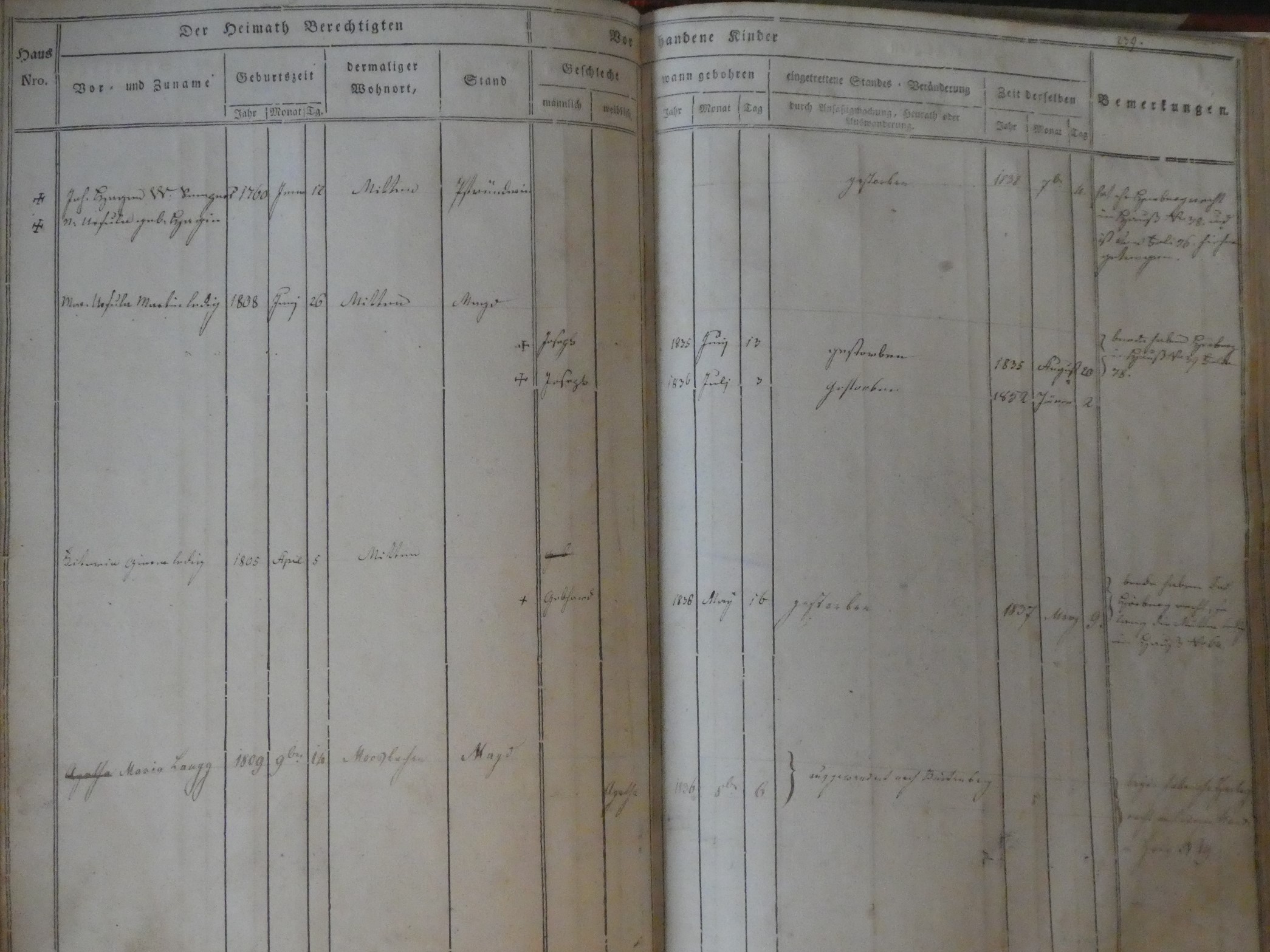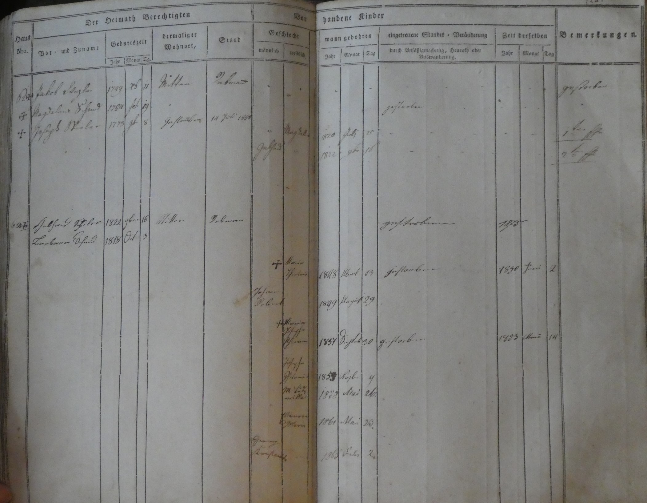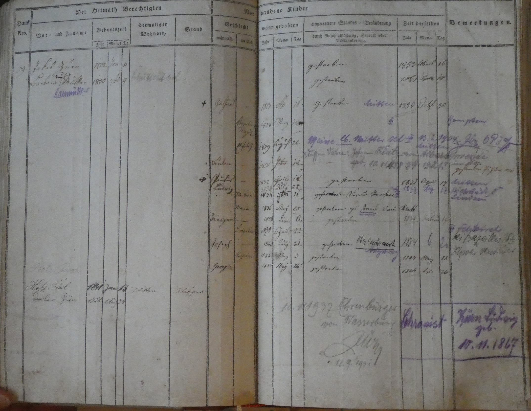 Familienstandesbuch Der Gemeinde Wasserburg vom 1.Juli 1827 ff.