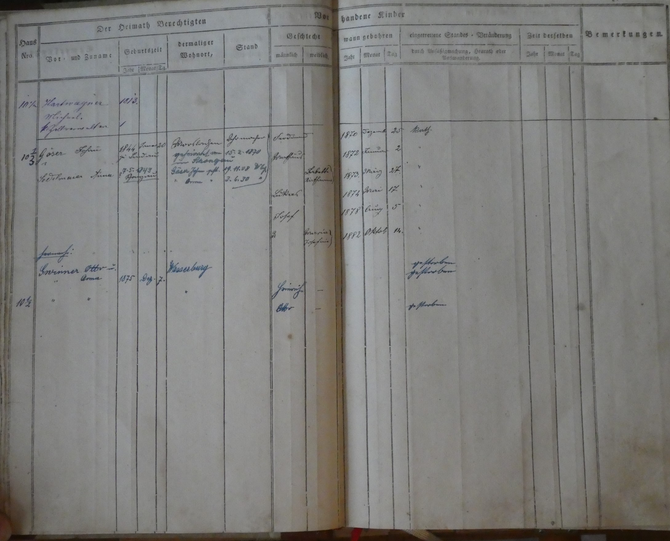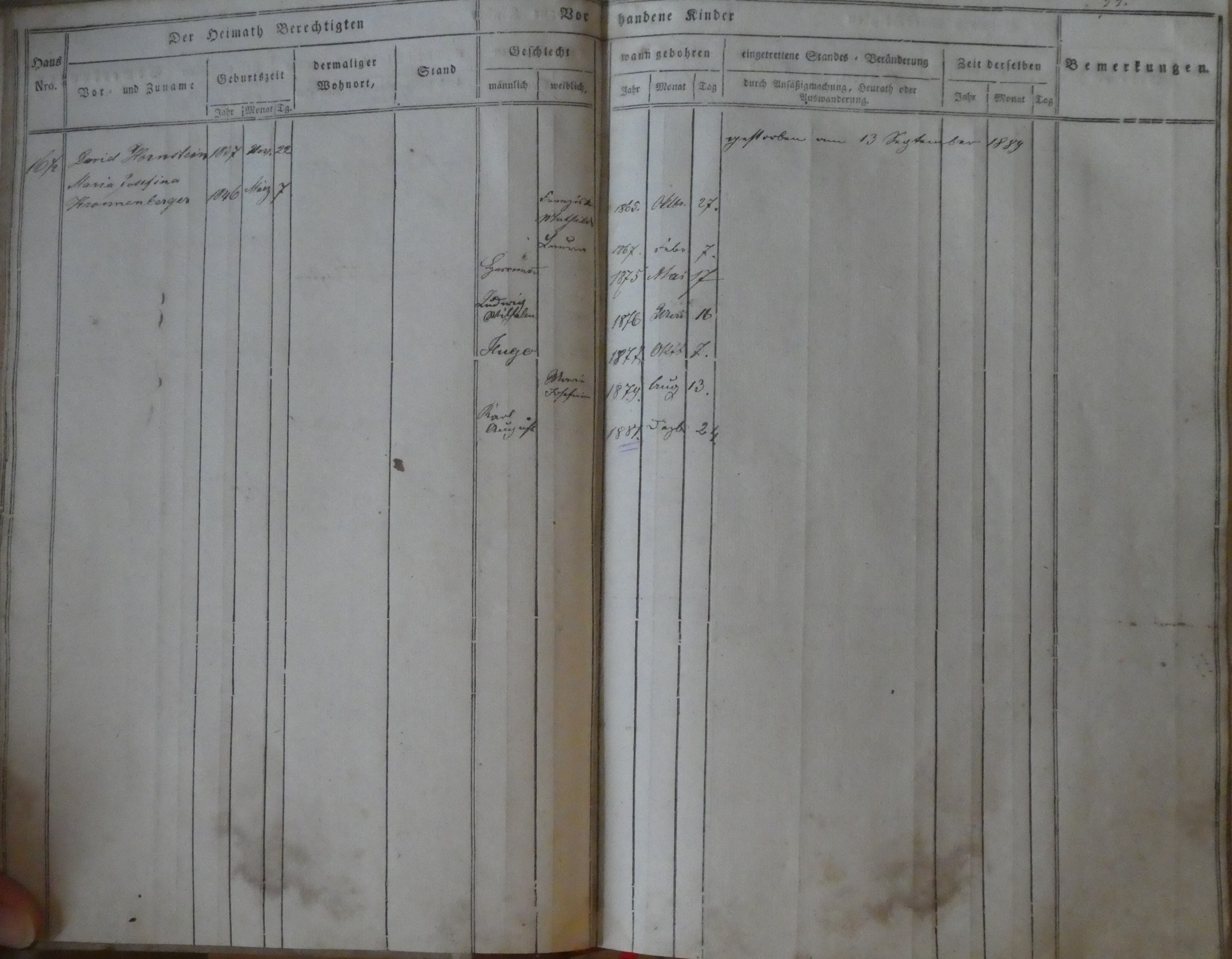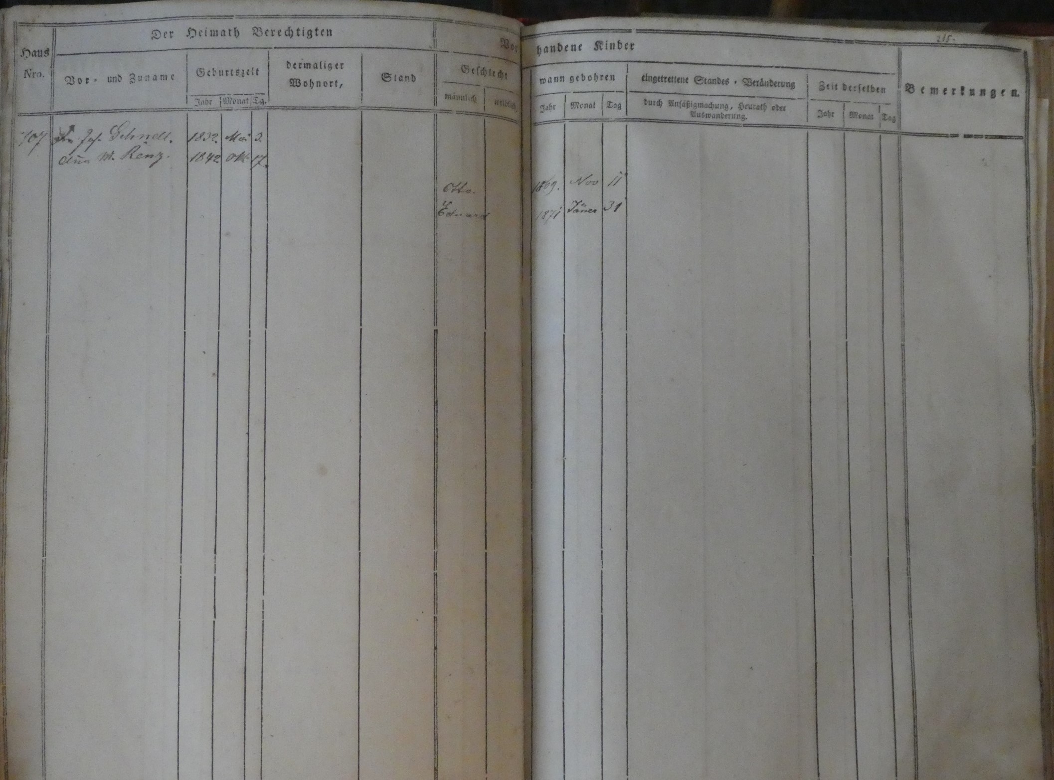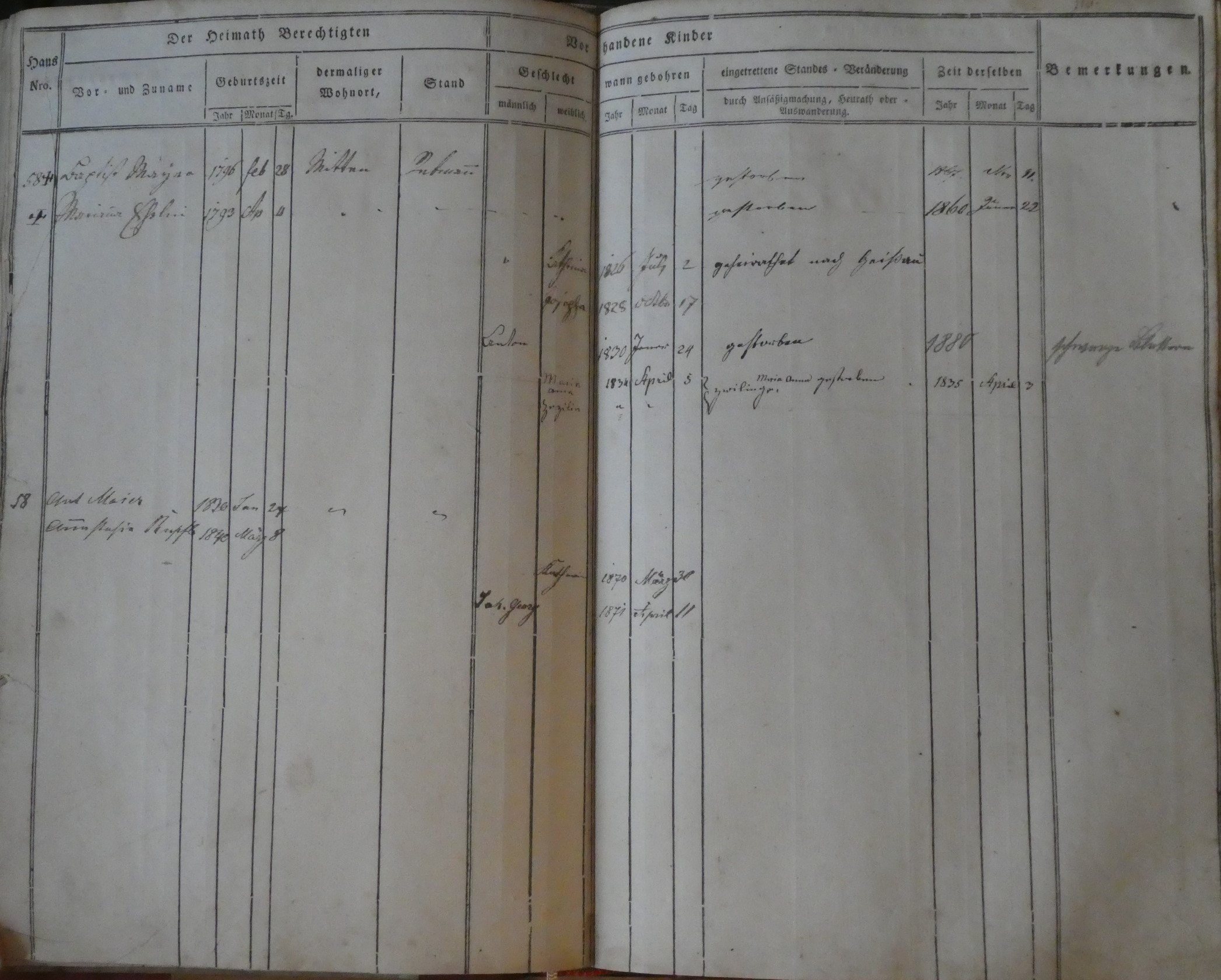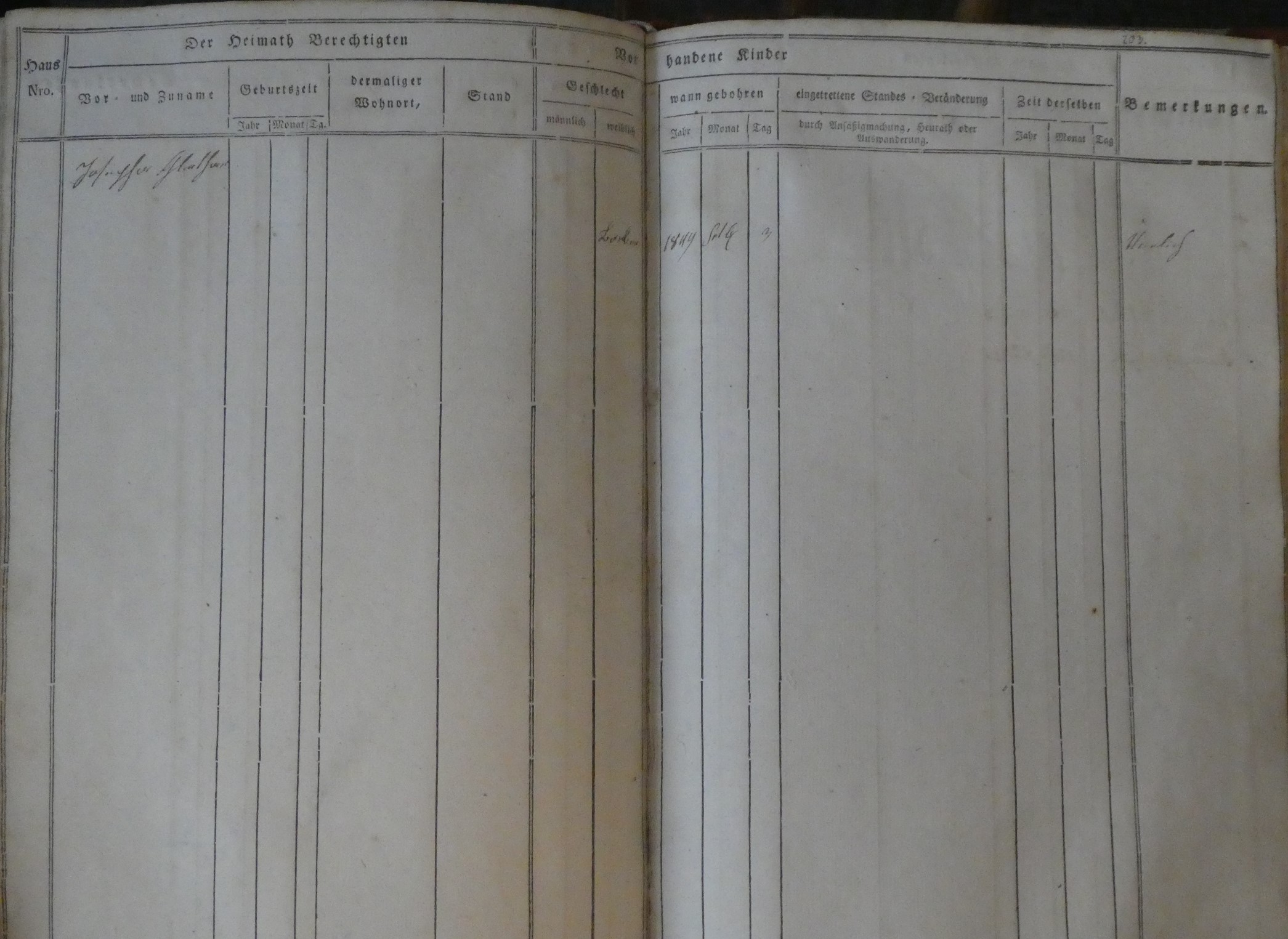 Familienstandesbuch Der Gemeinde Wasserburg vom 1.Juli 1827 ff.