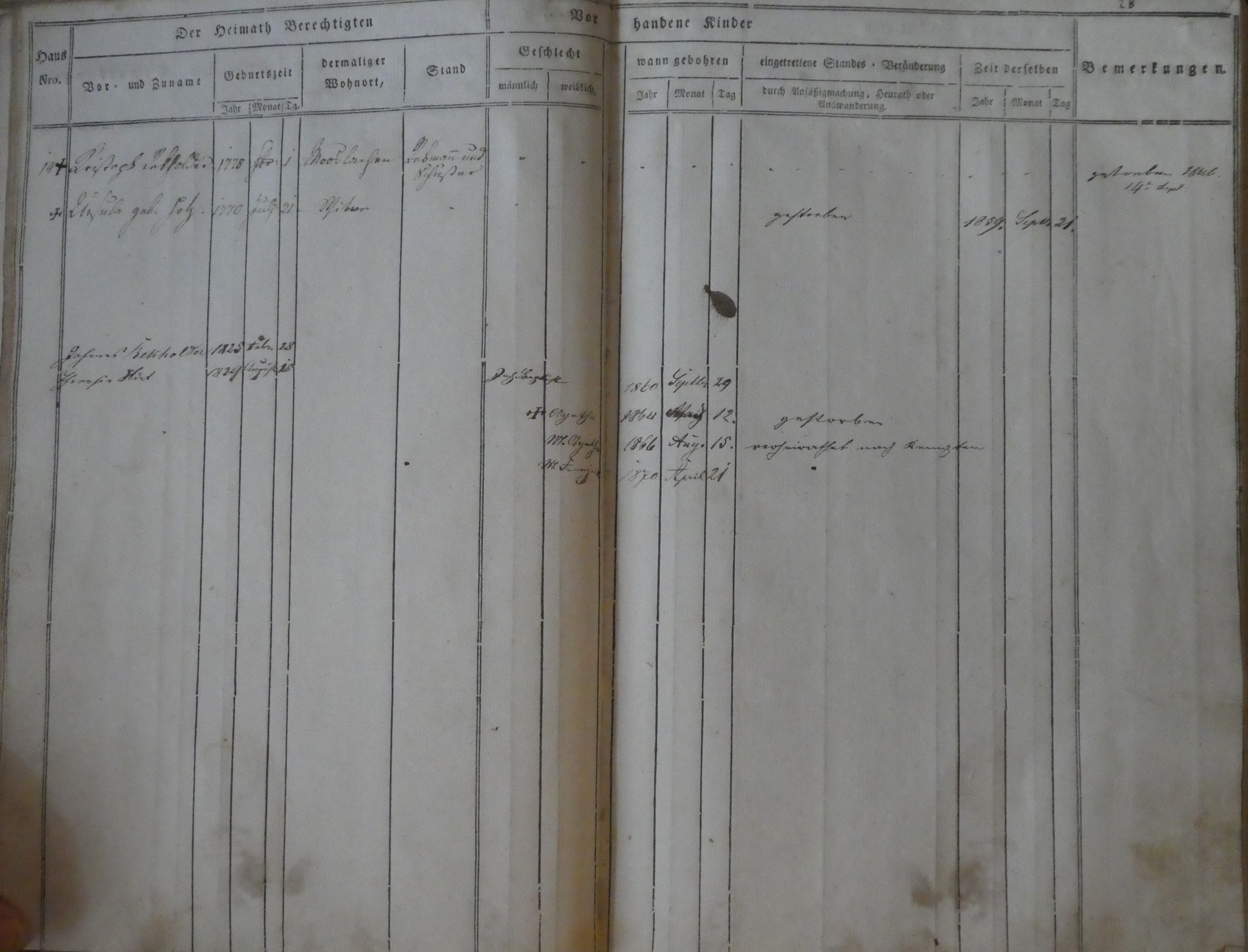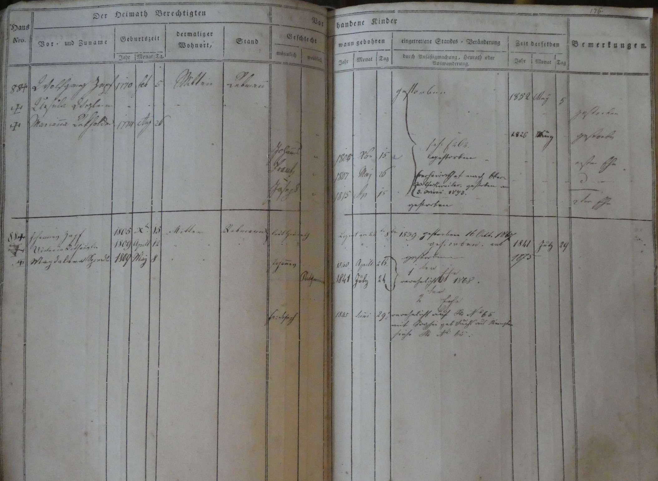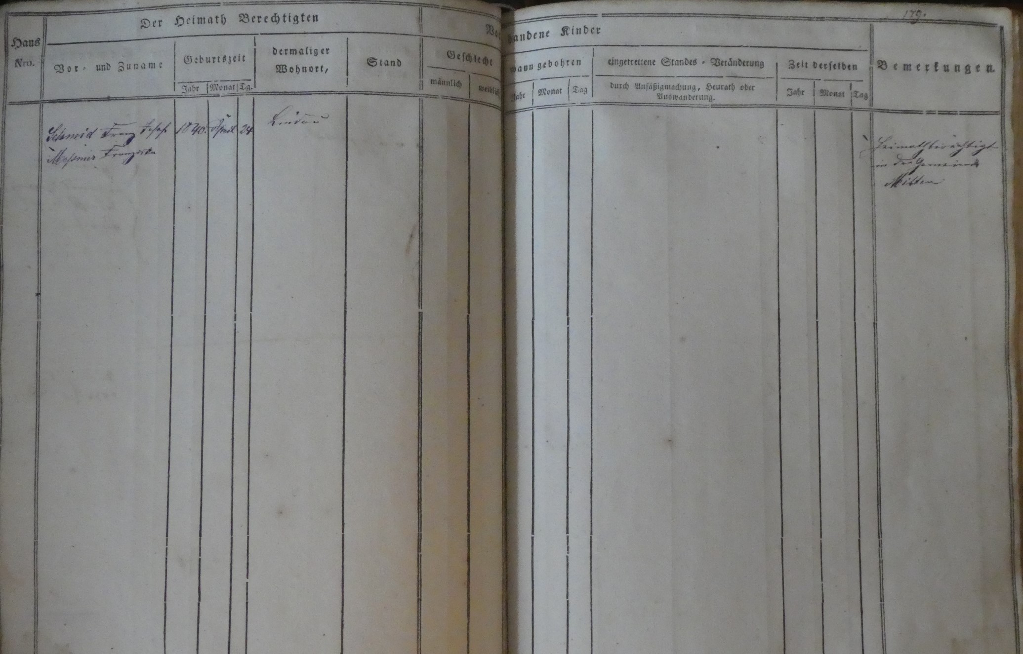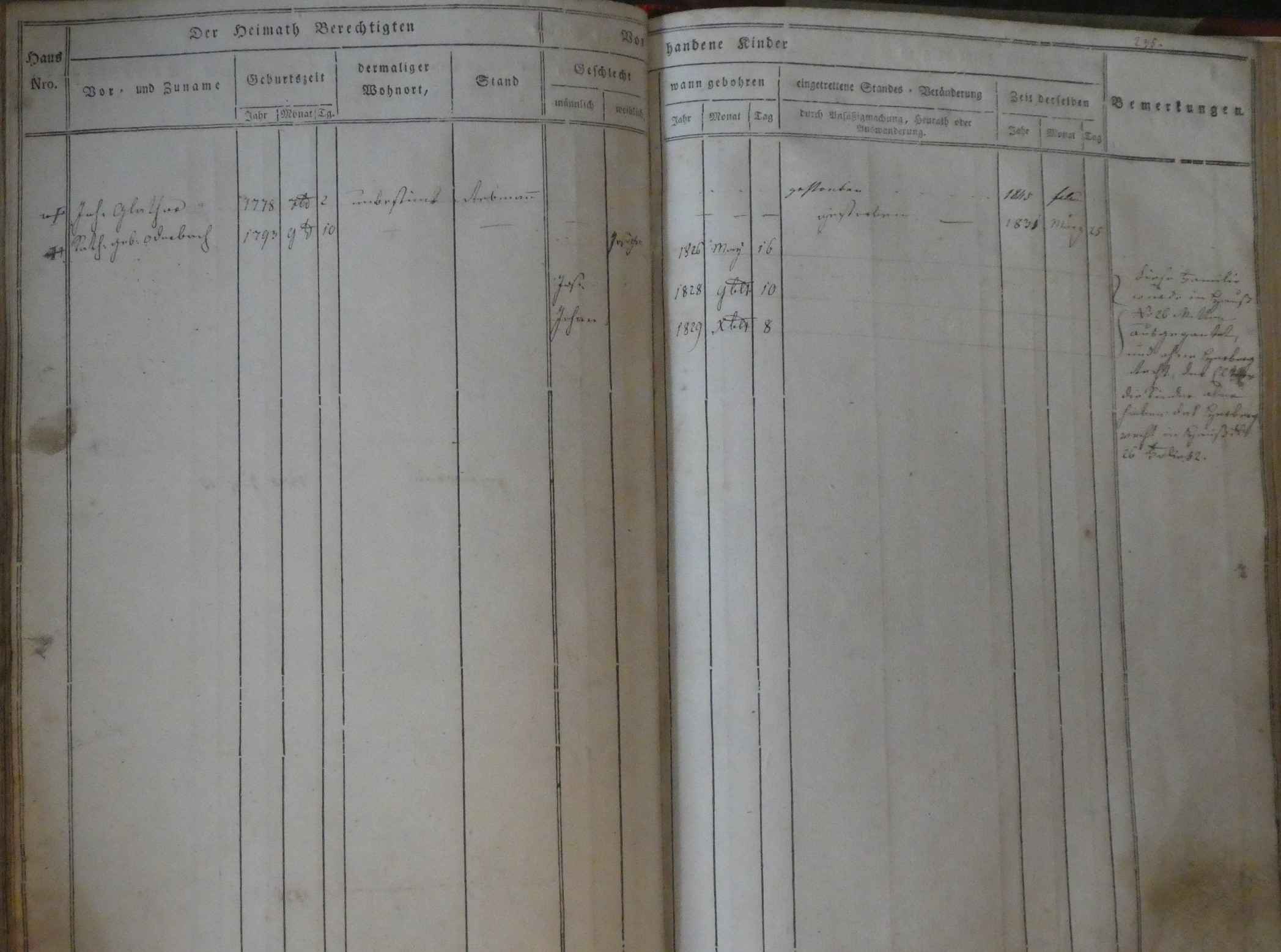 Familienstandesbuch Der Gemeinde Wasserburg vom 1.Juli 1827 ff.