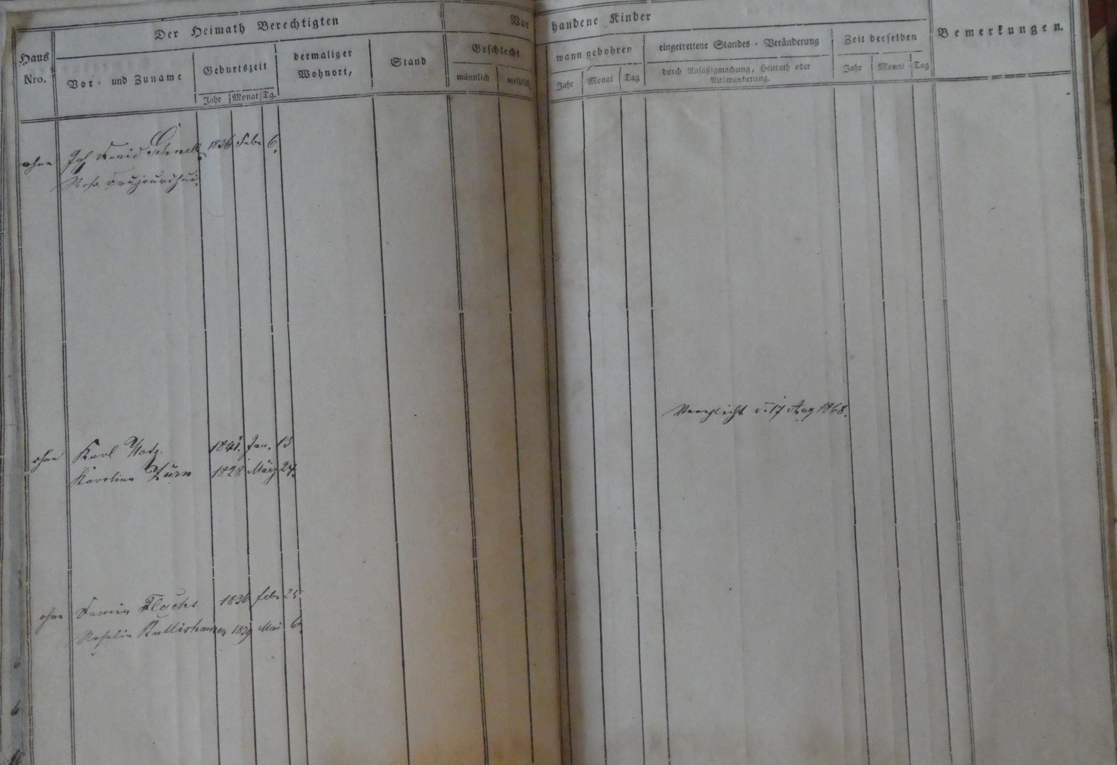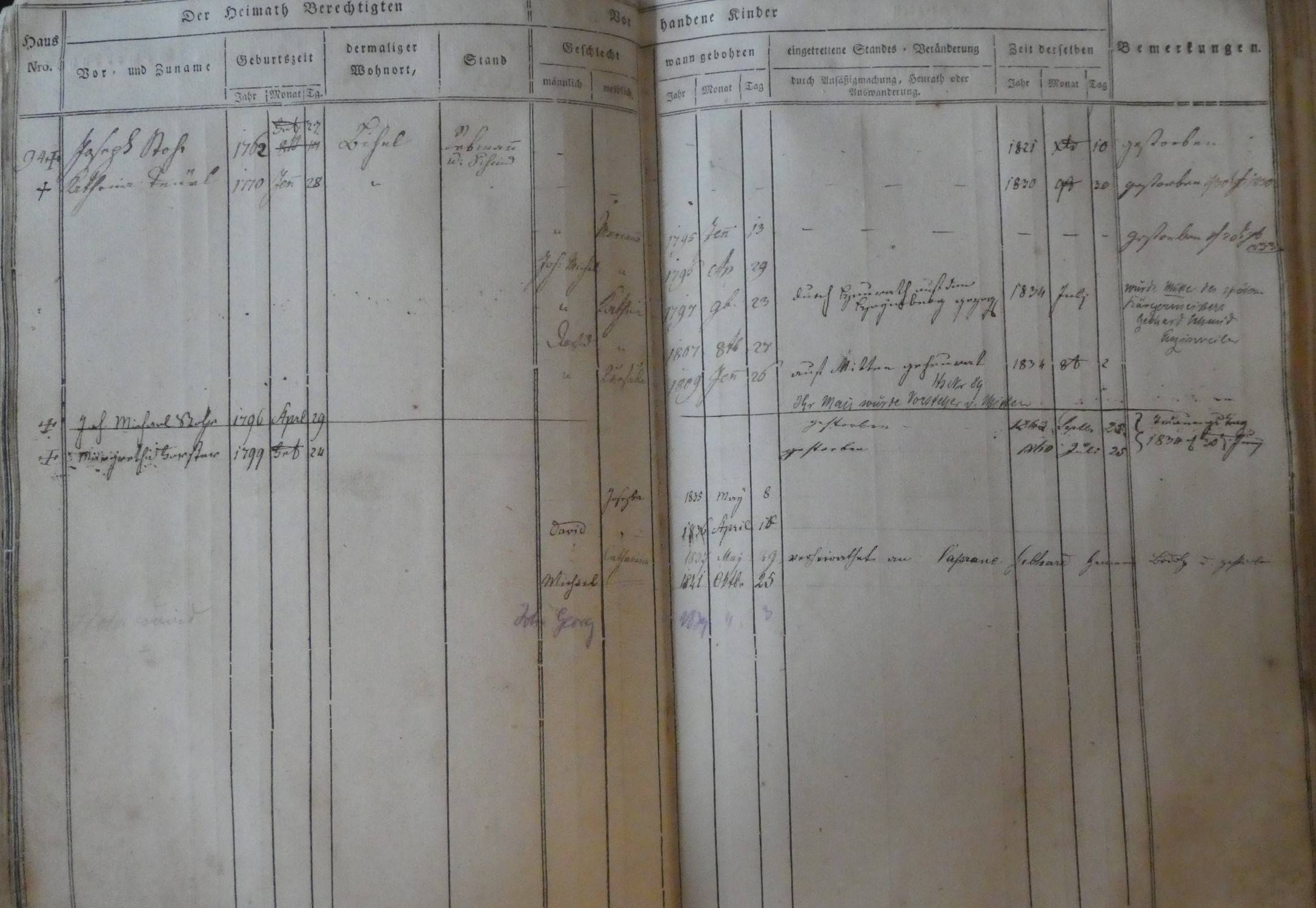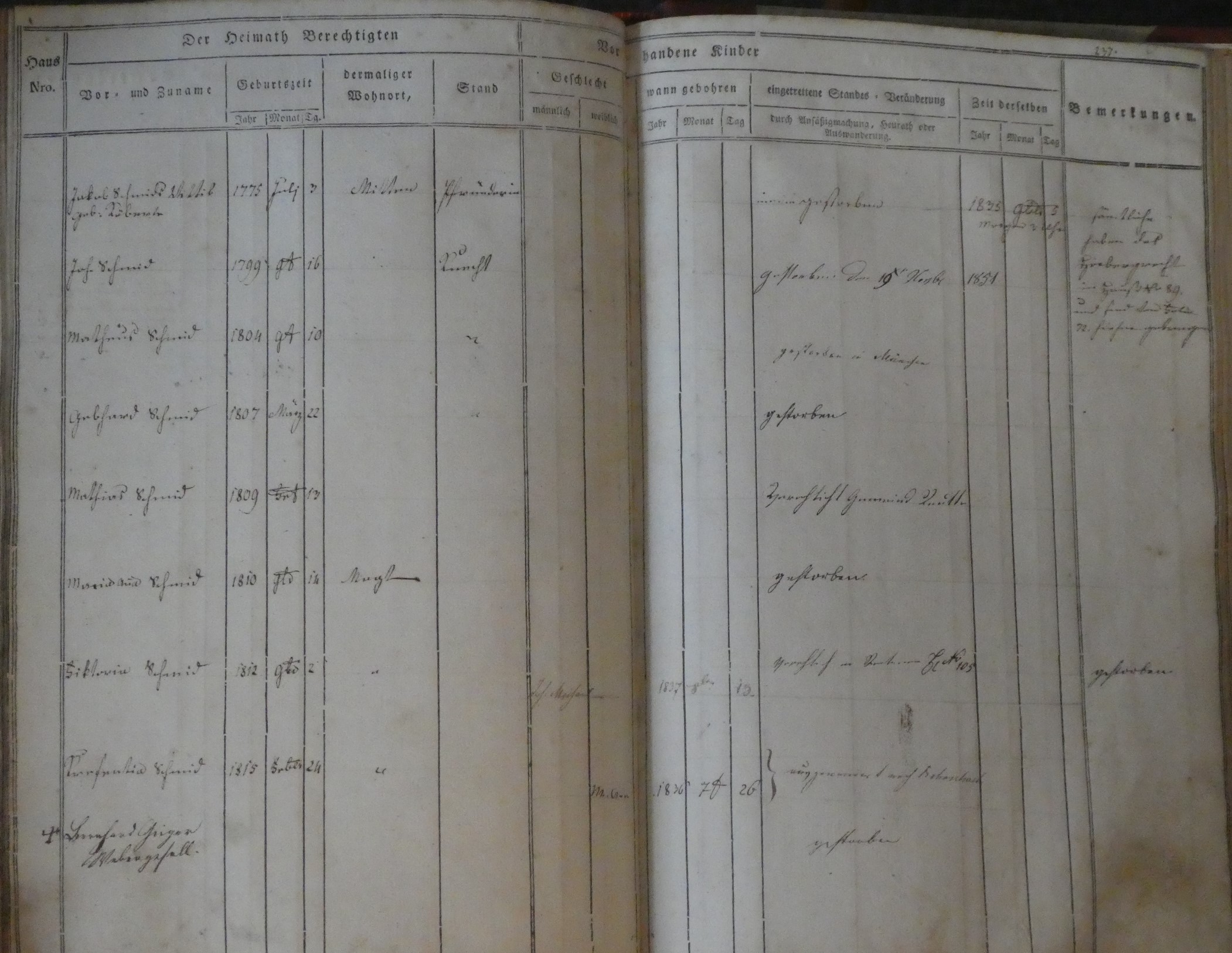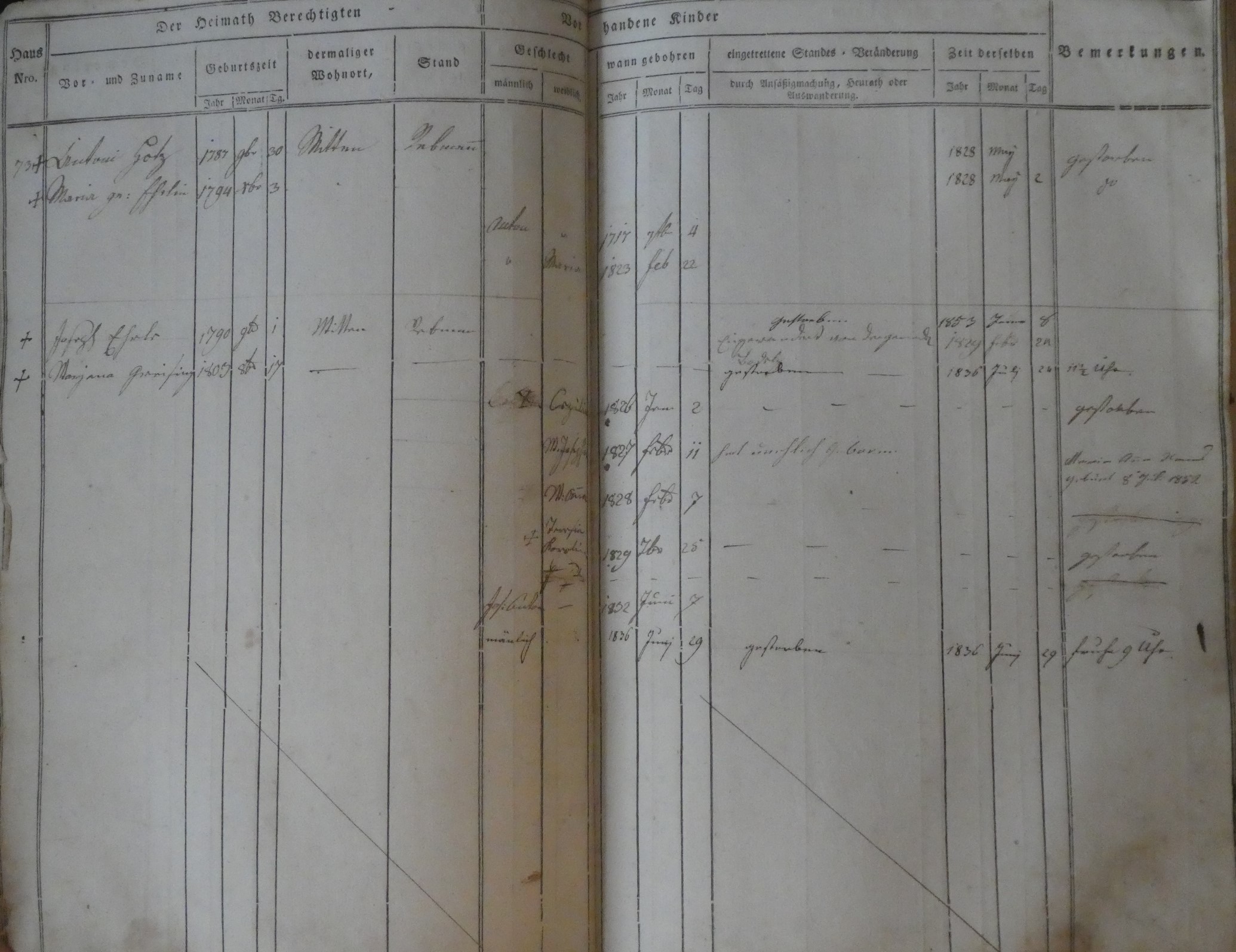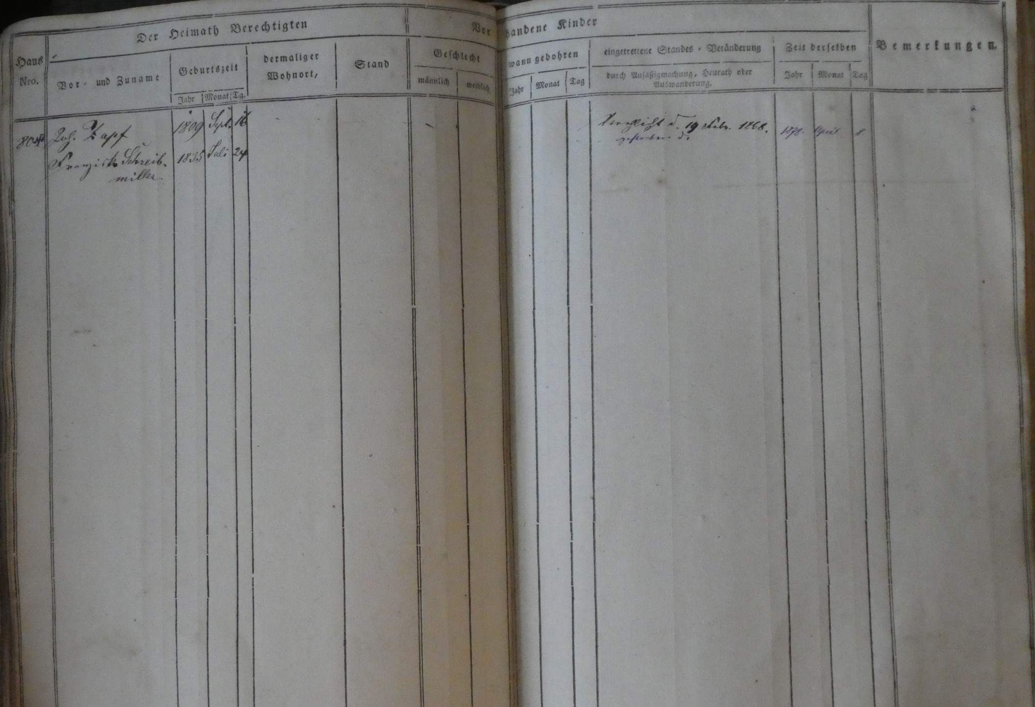 Familienstandesbuch Der Gemeinde Wasserburg vom 1.Juli 1827 ff.
