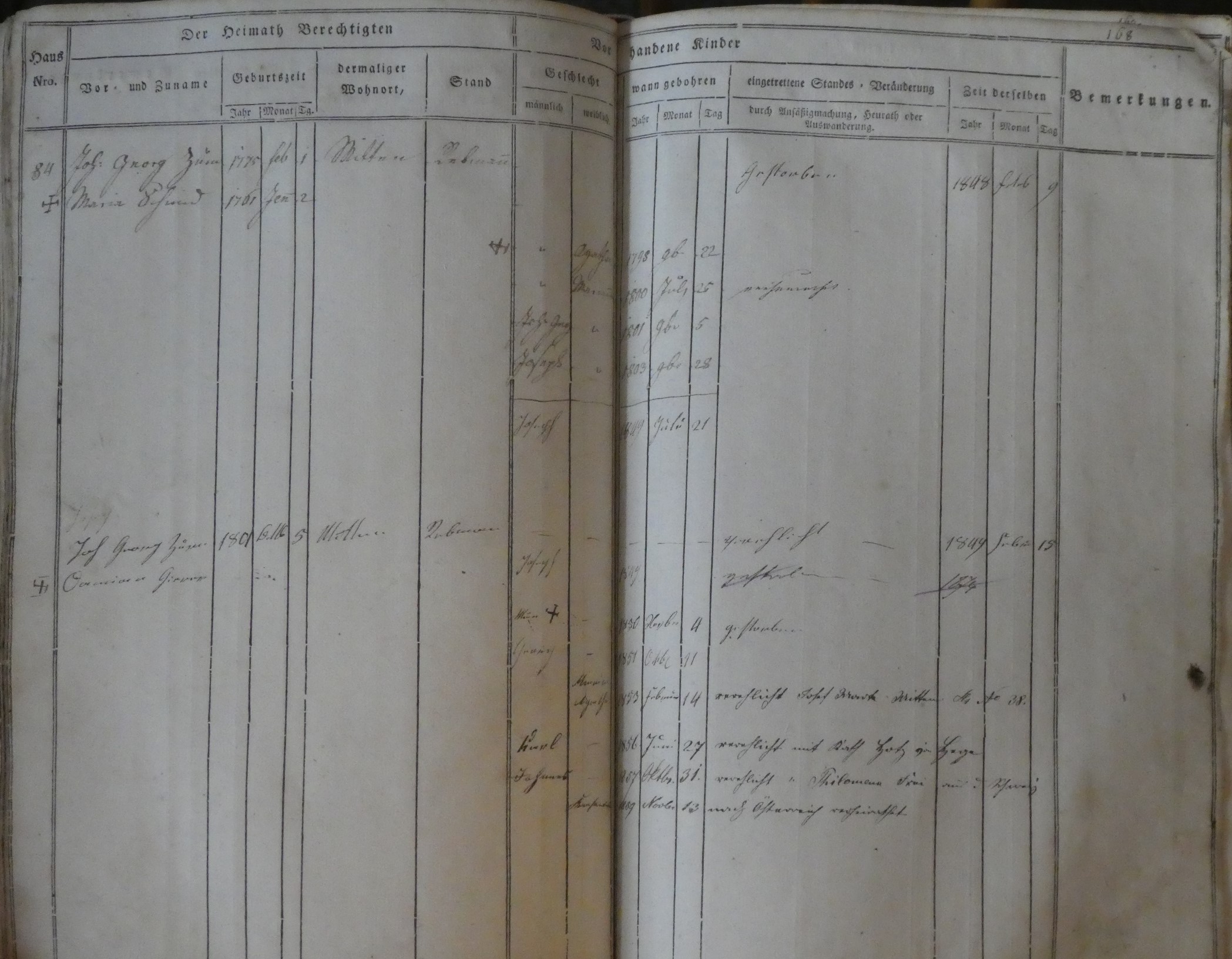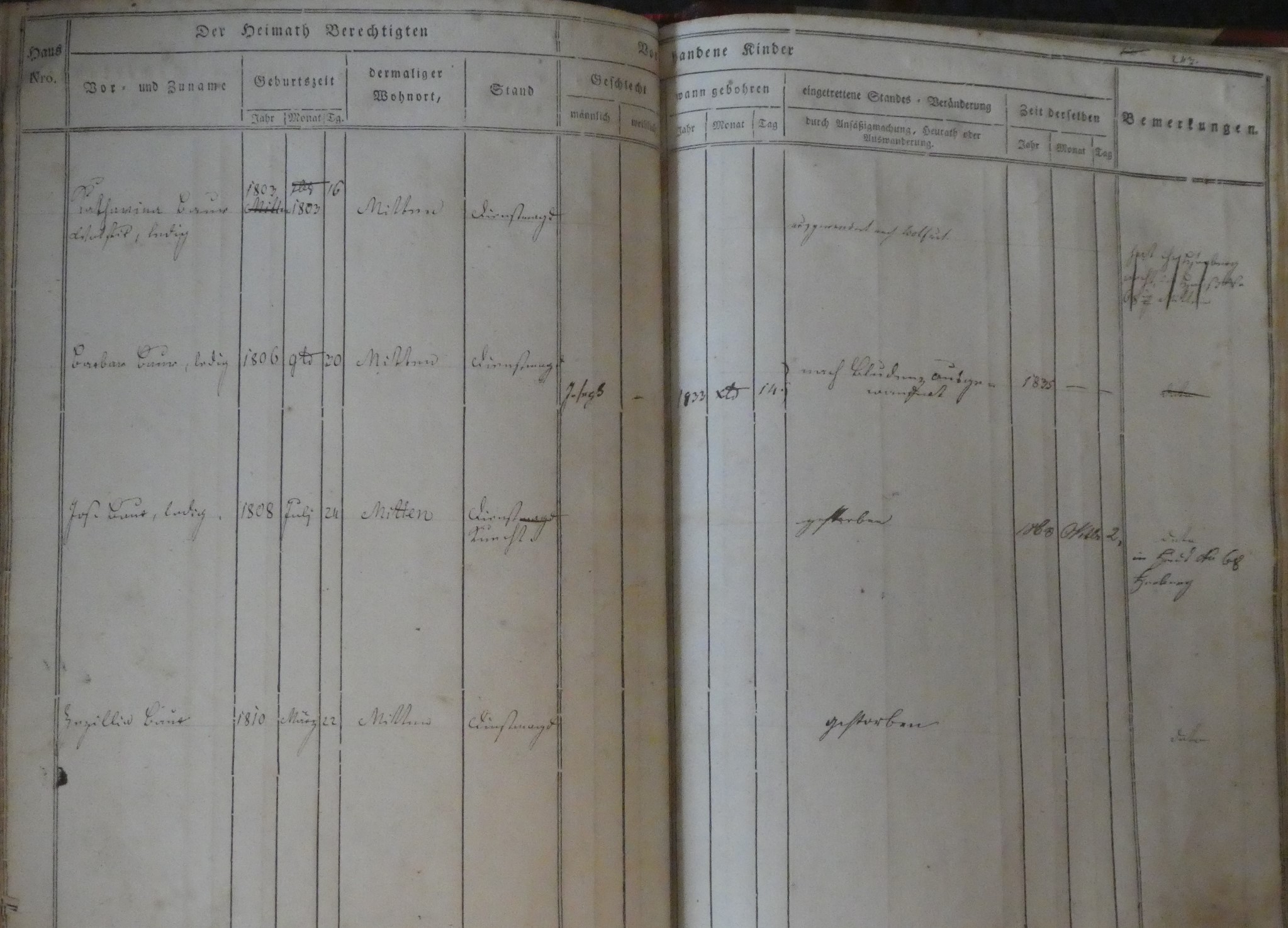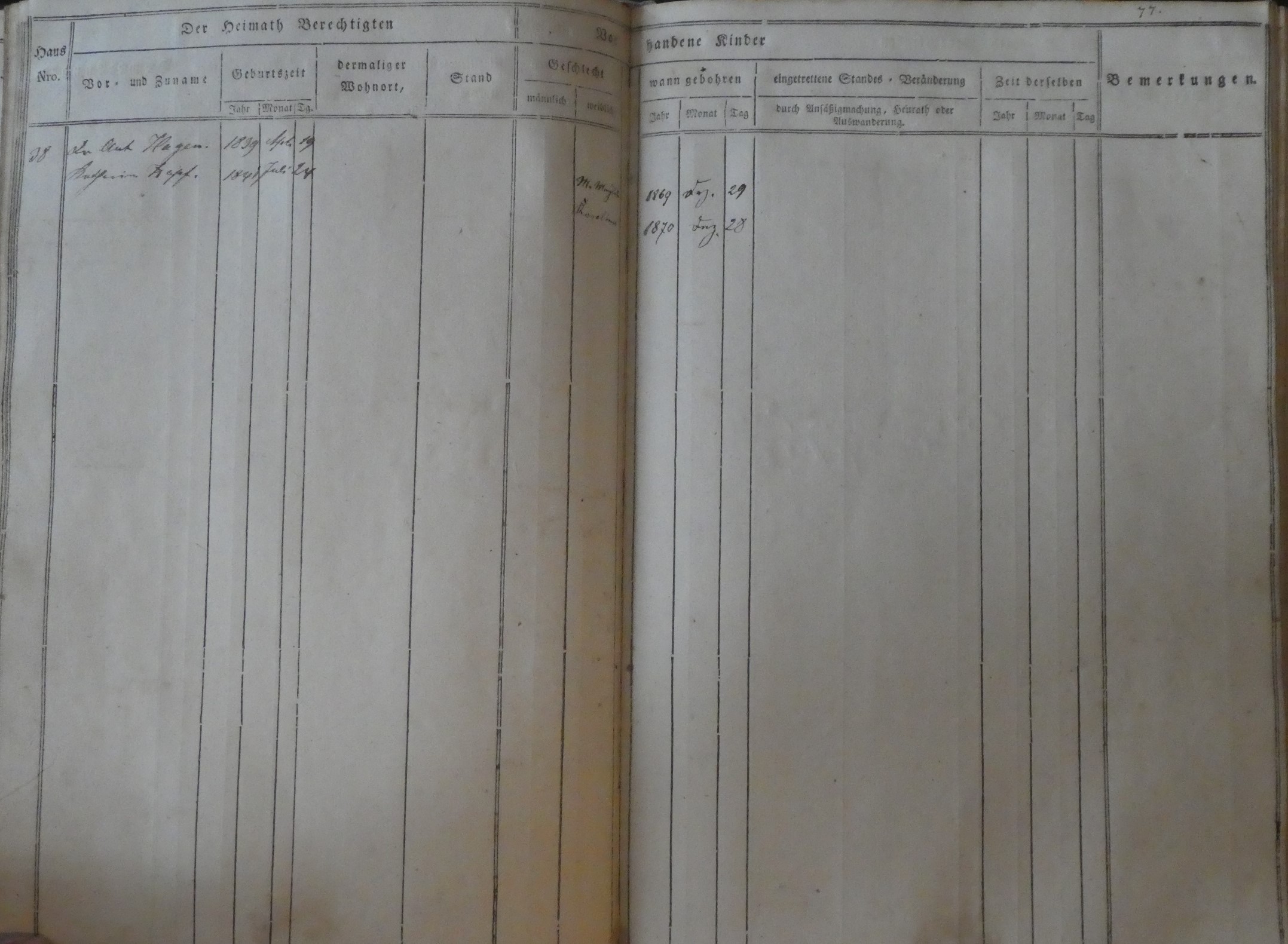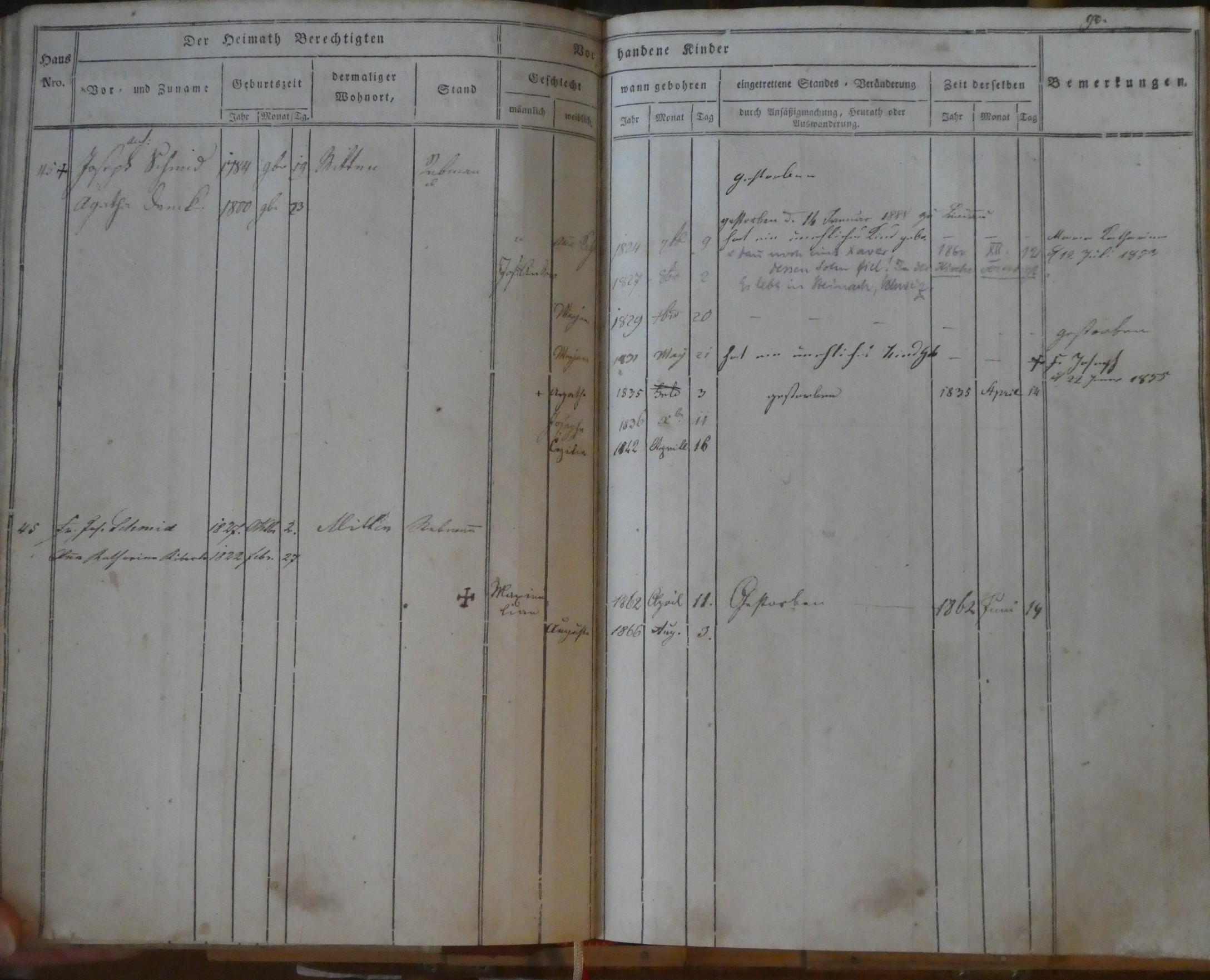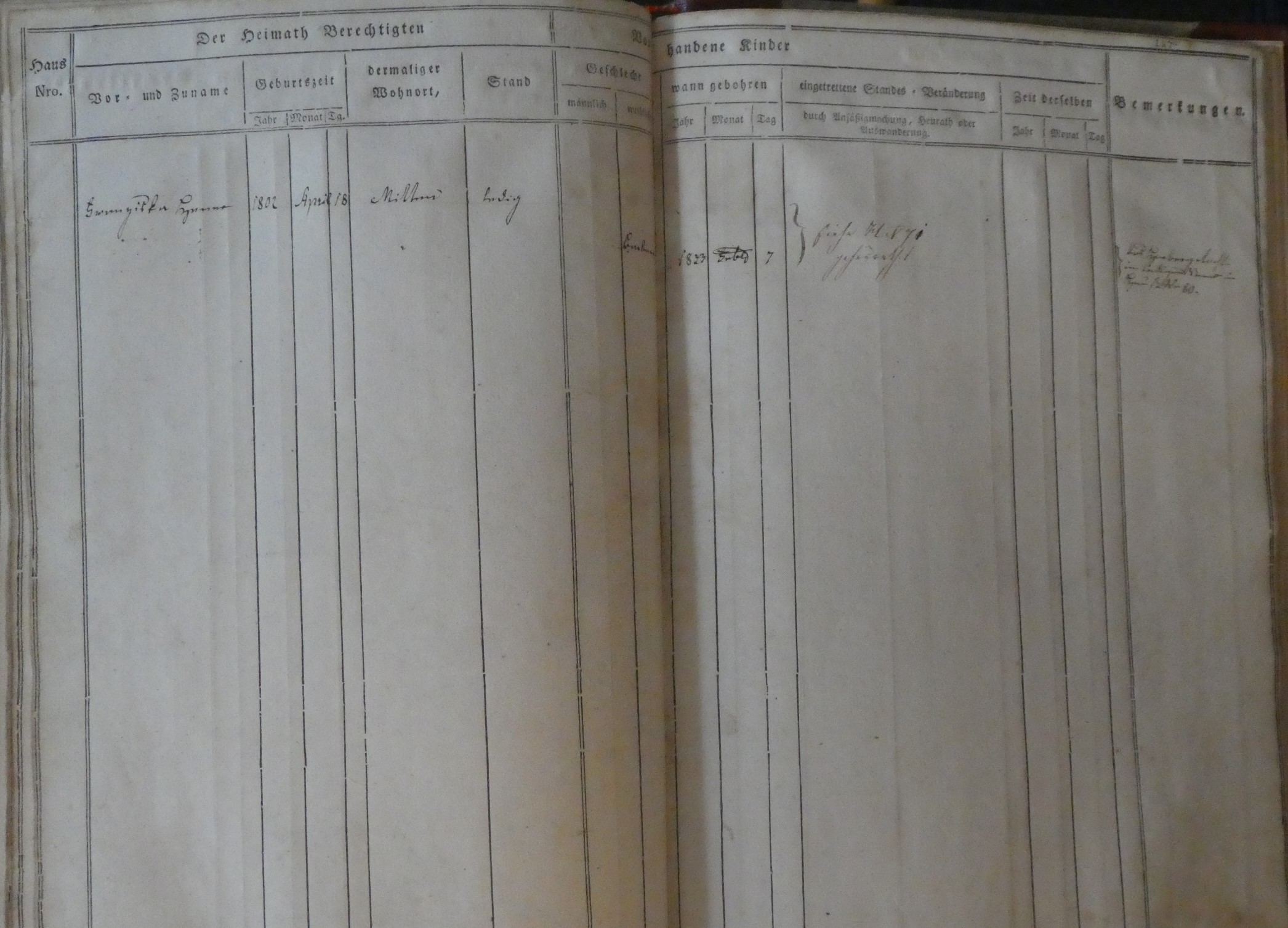 Familienstandesbuch Der Gemeinde Wasserburg vom 1.Juli 1827 ff.