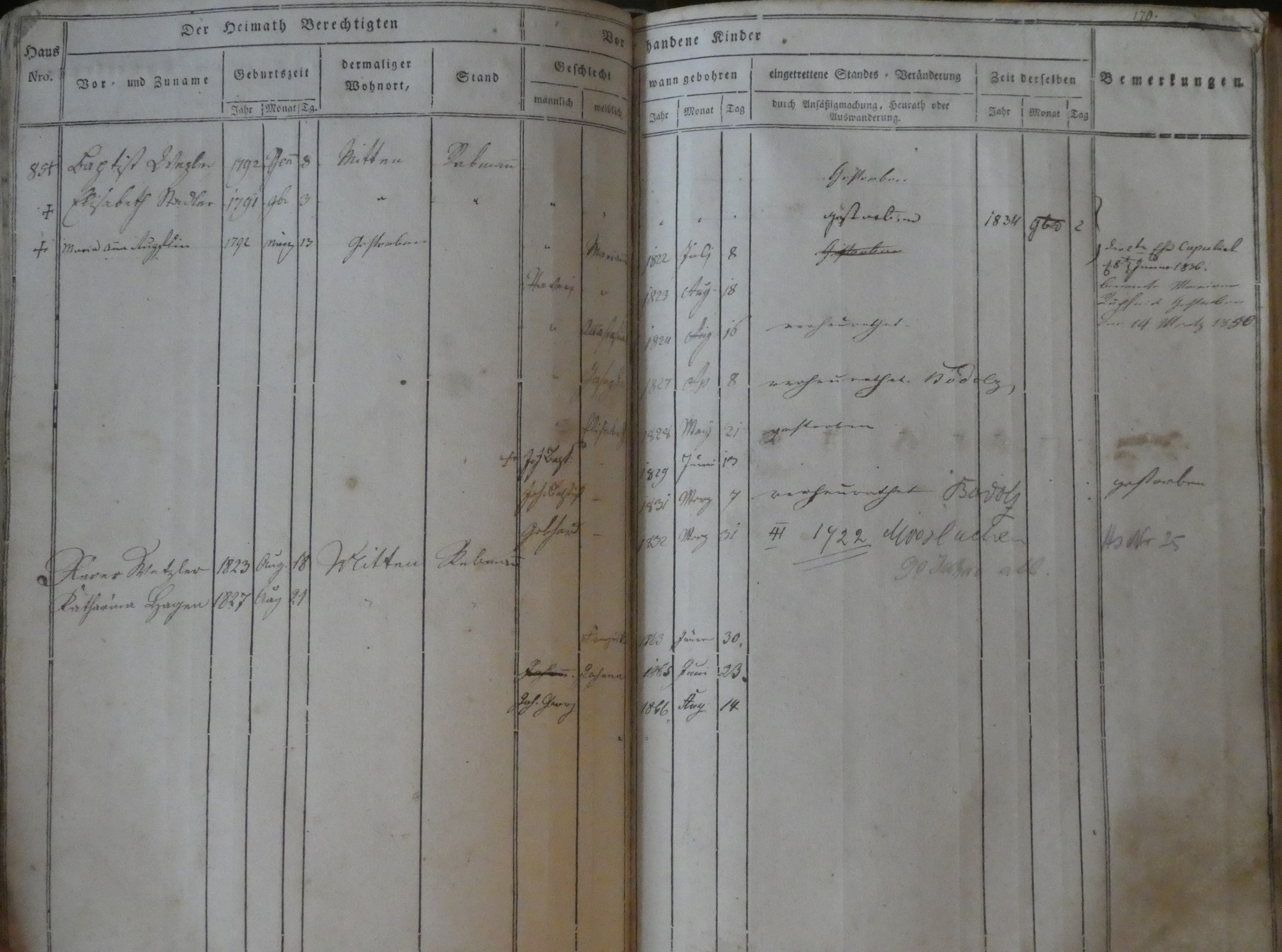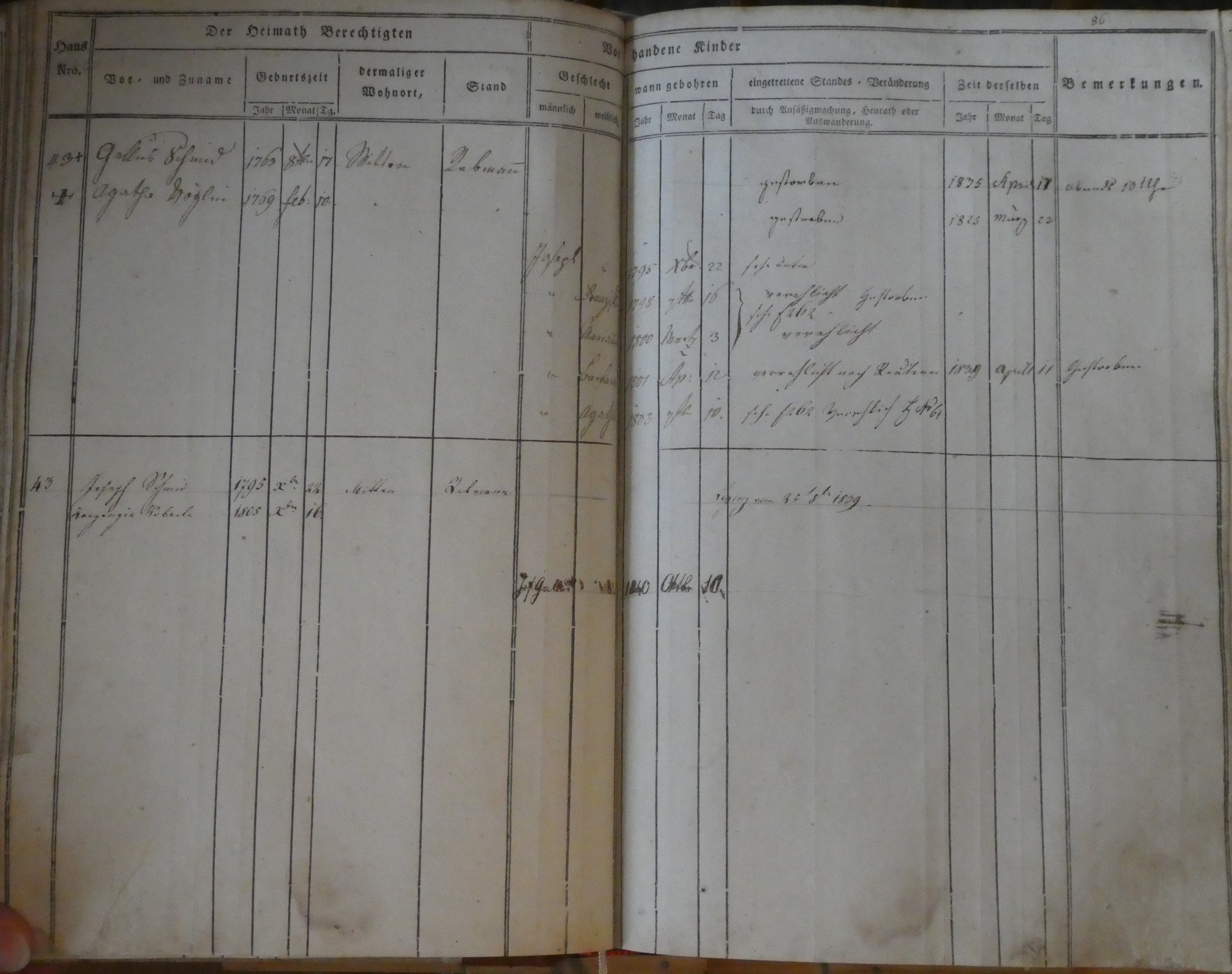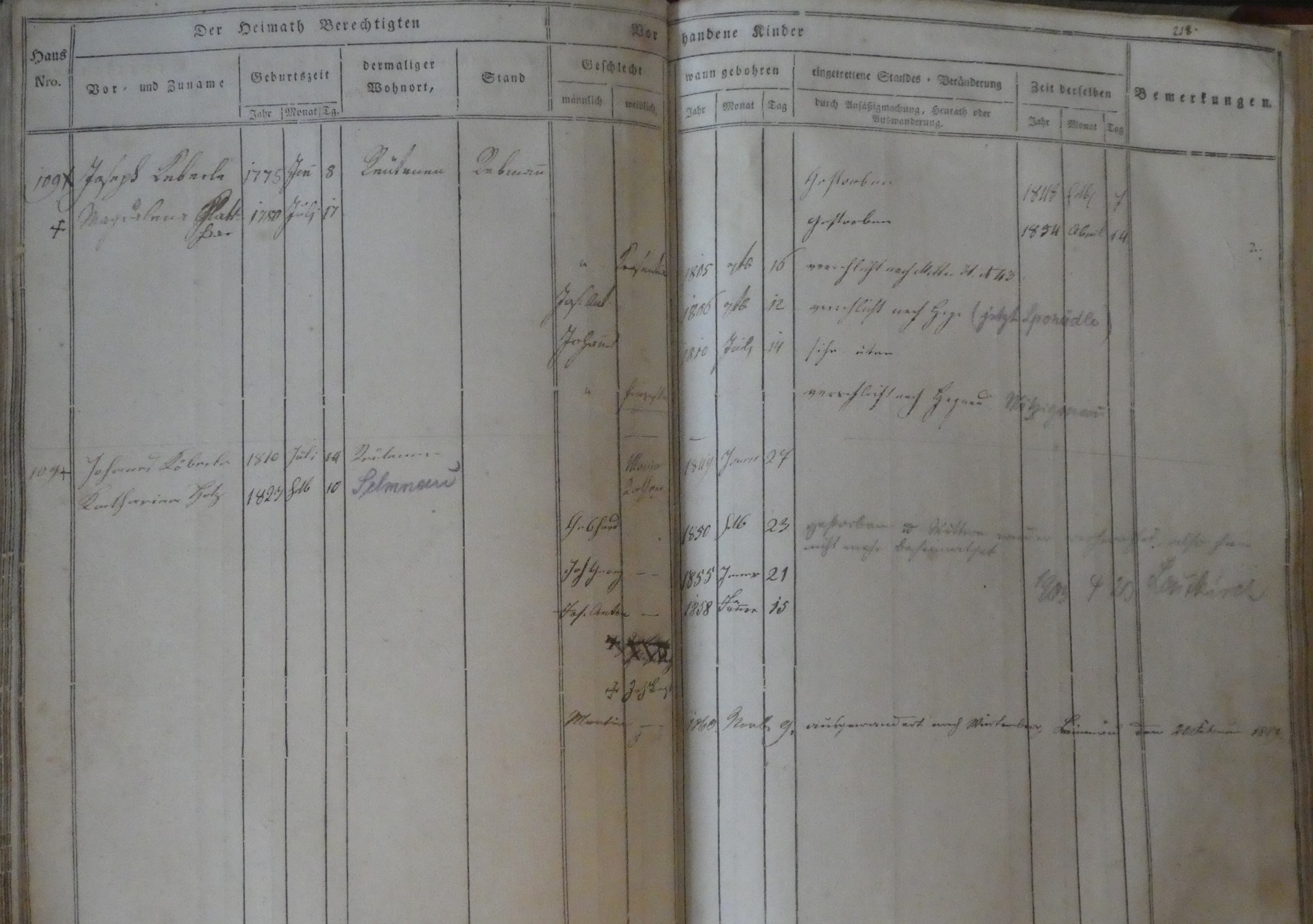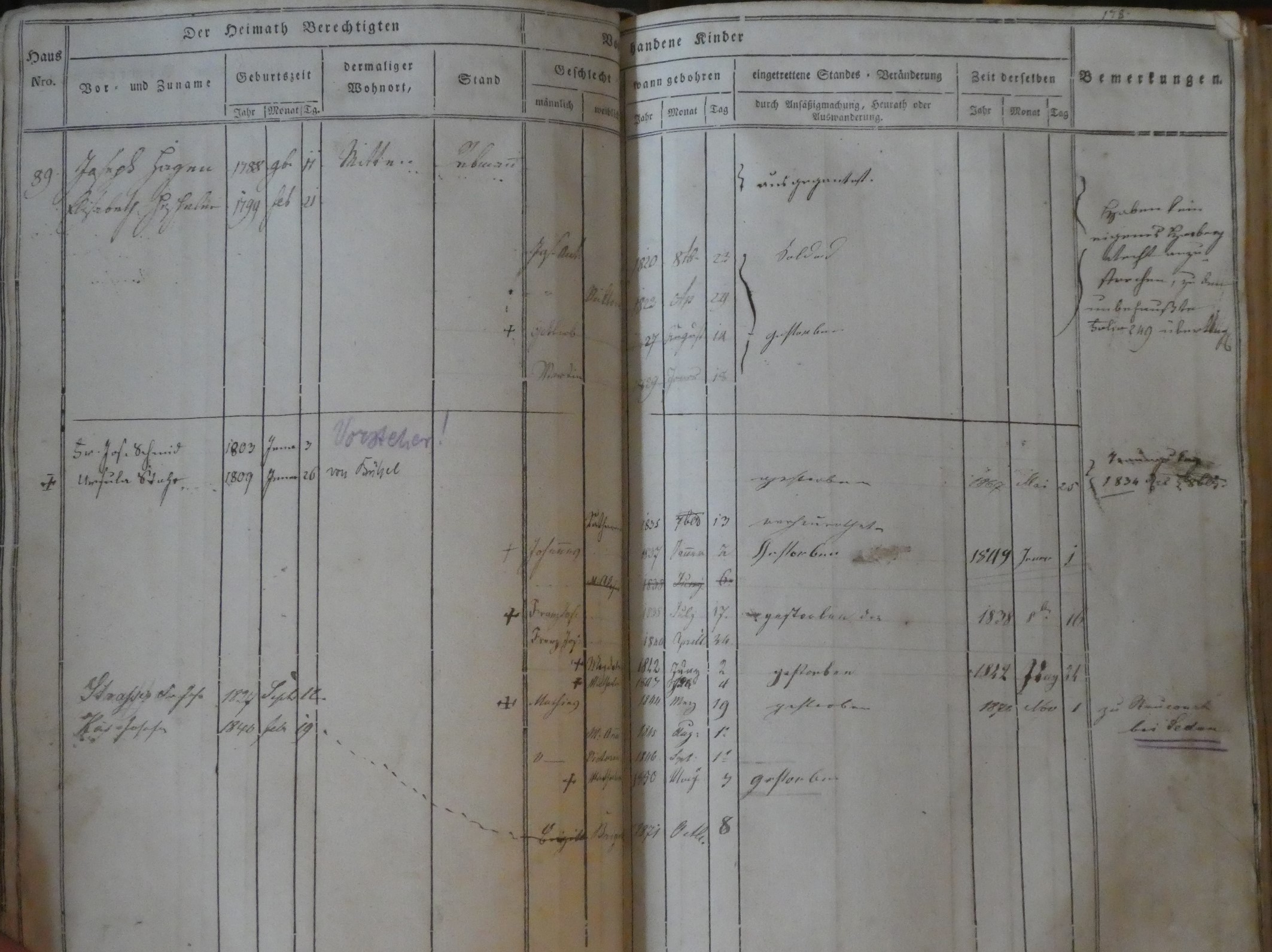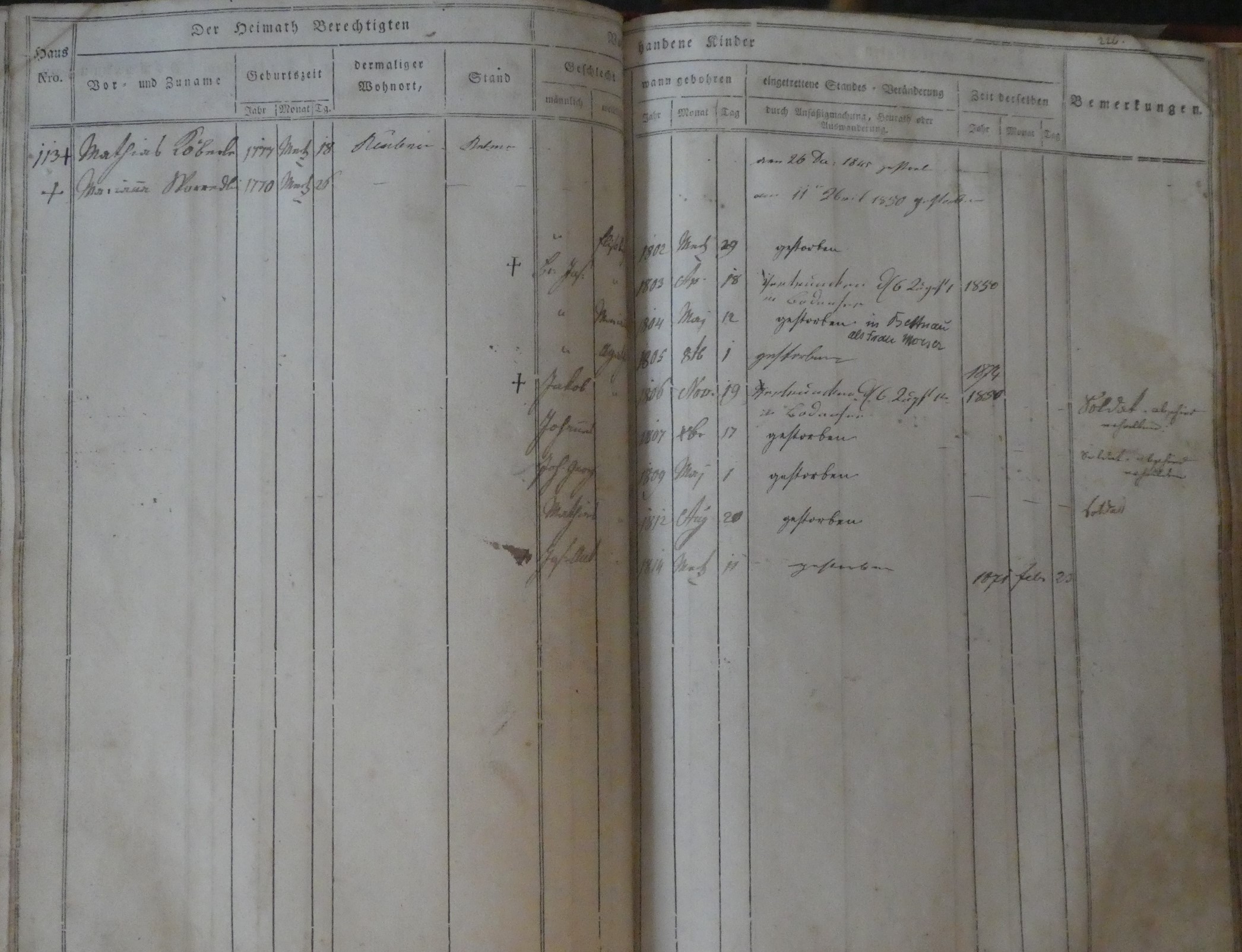 Durch Anklicken der Seitennummer in der 2. Spalte werden die Orginalseiten des Familienstandesbuchs