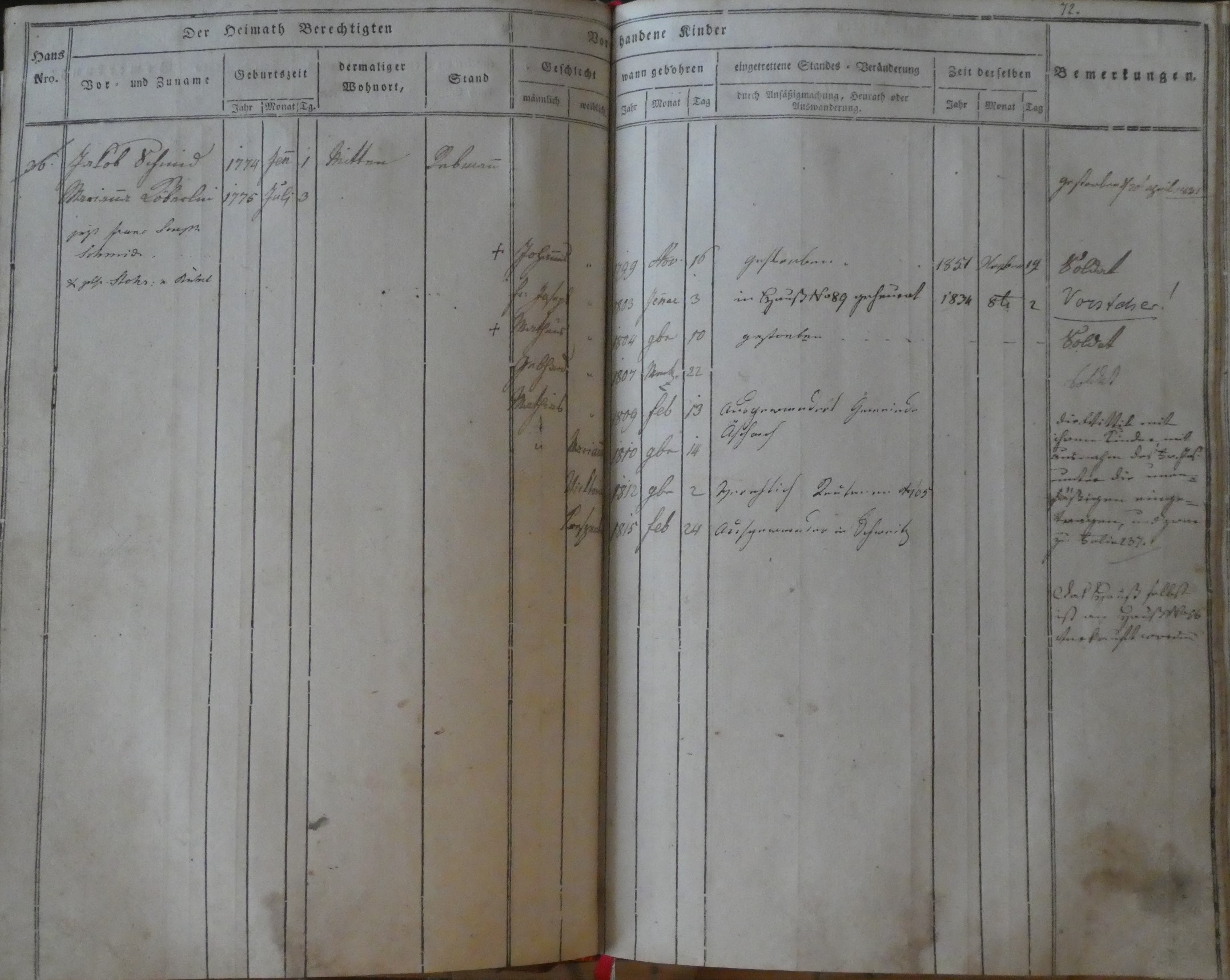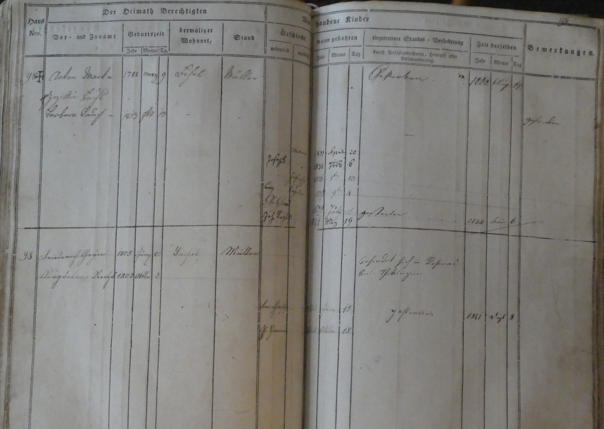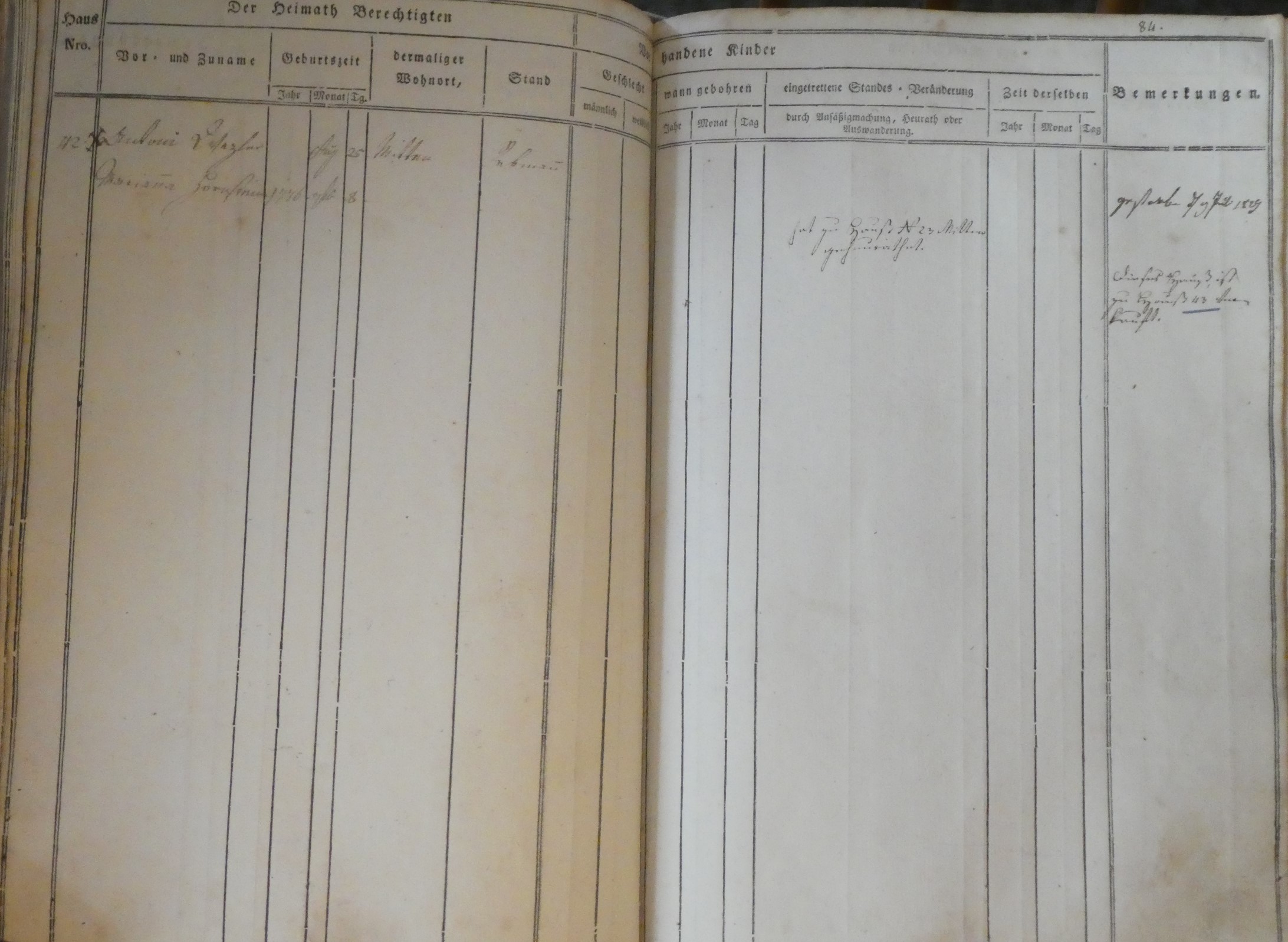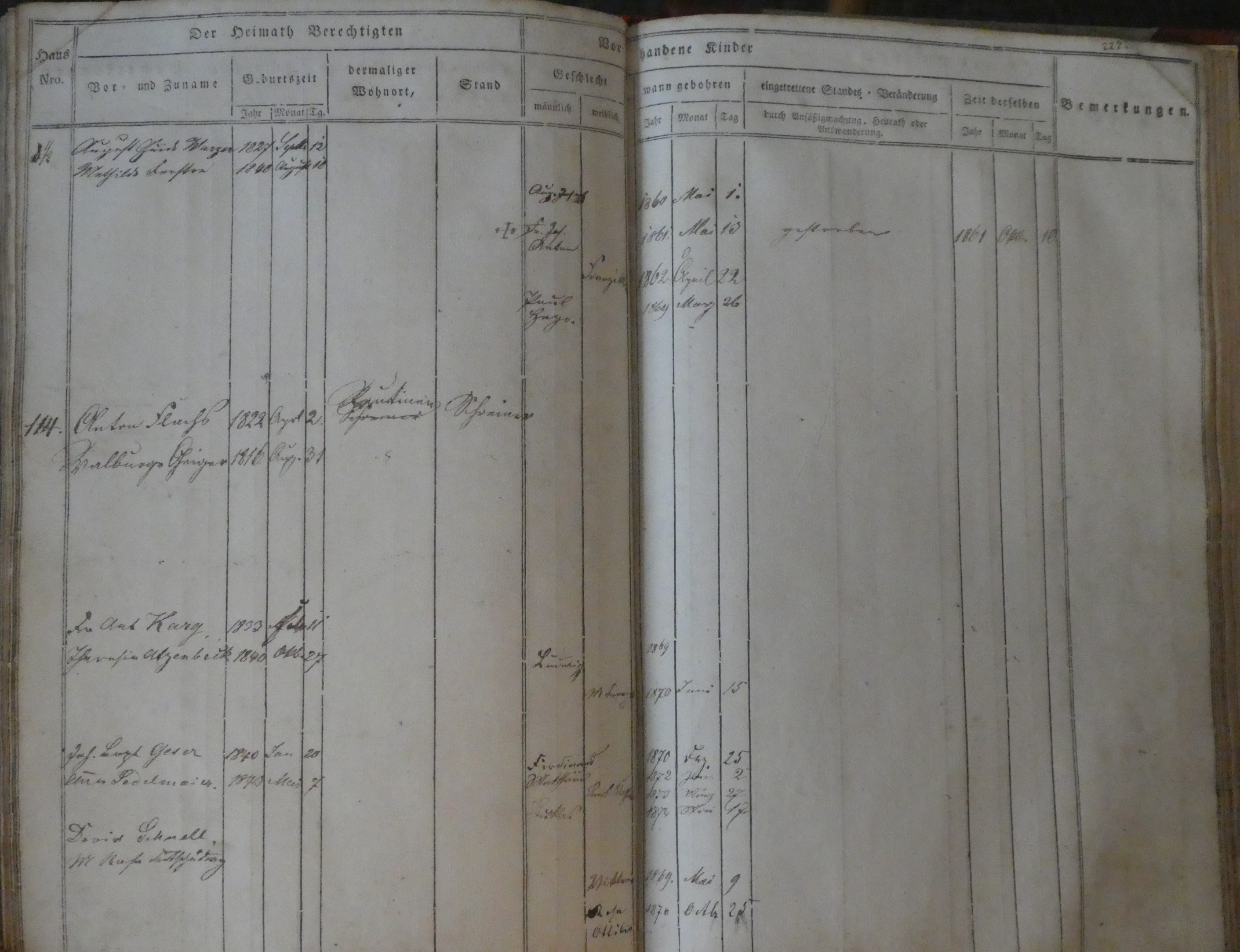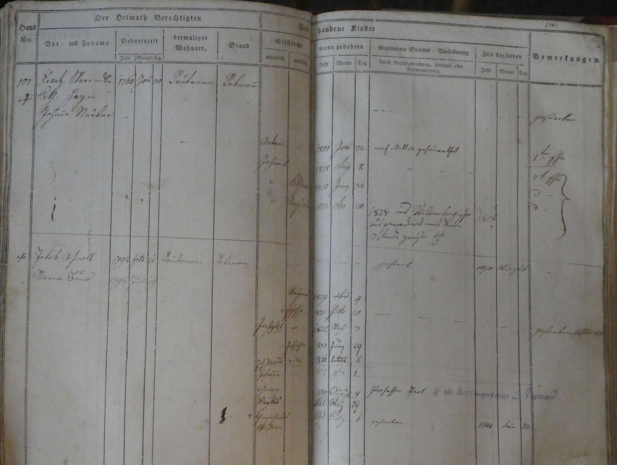 Durch Anklicken der Seitennummer in der 2. Spalte werden die Orginalseiten des Familienstandesbuchs