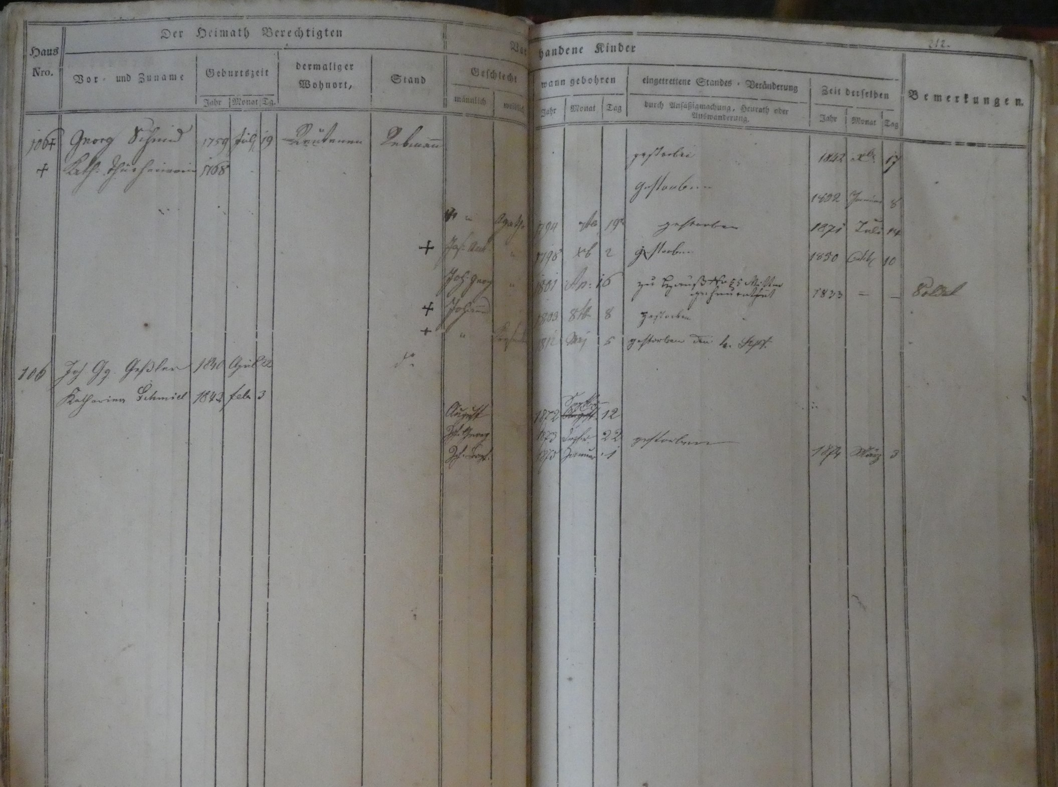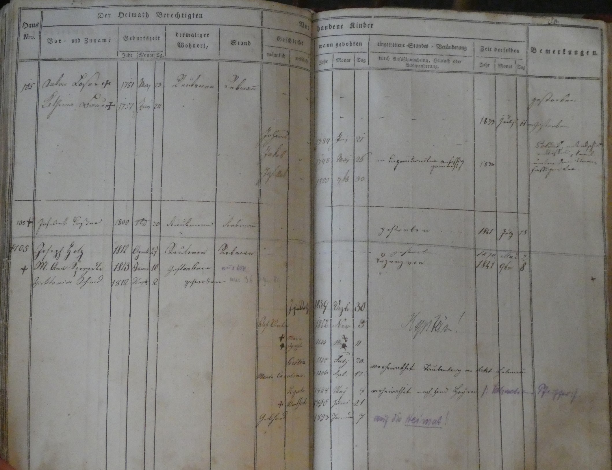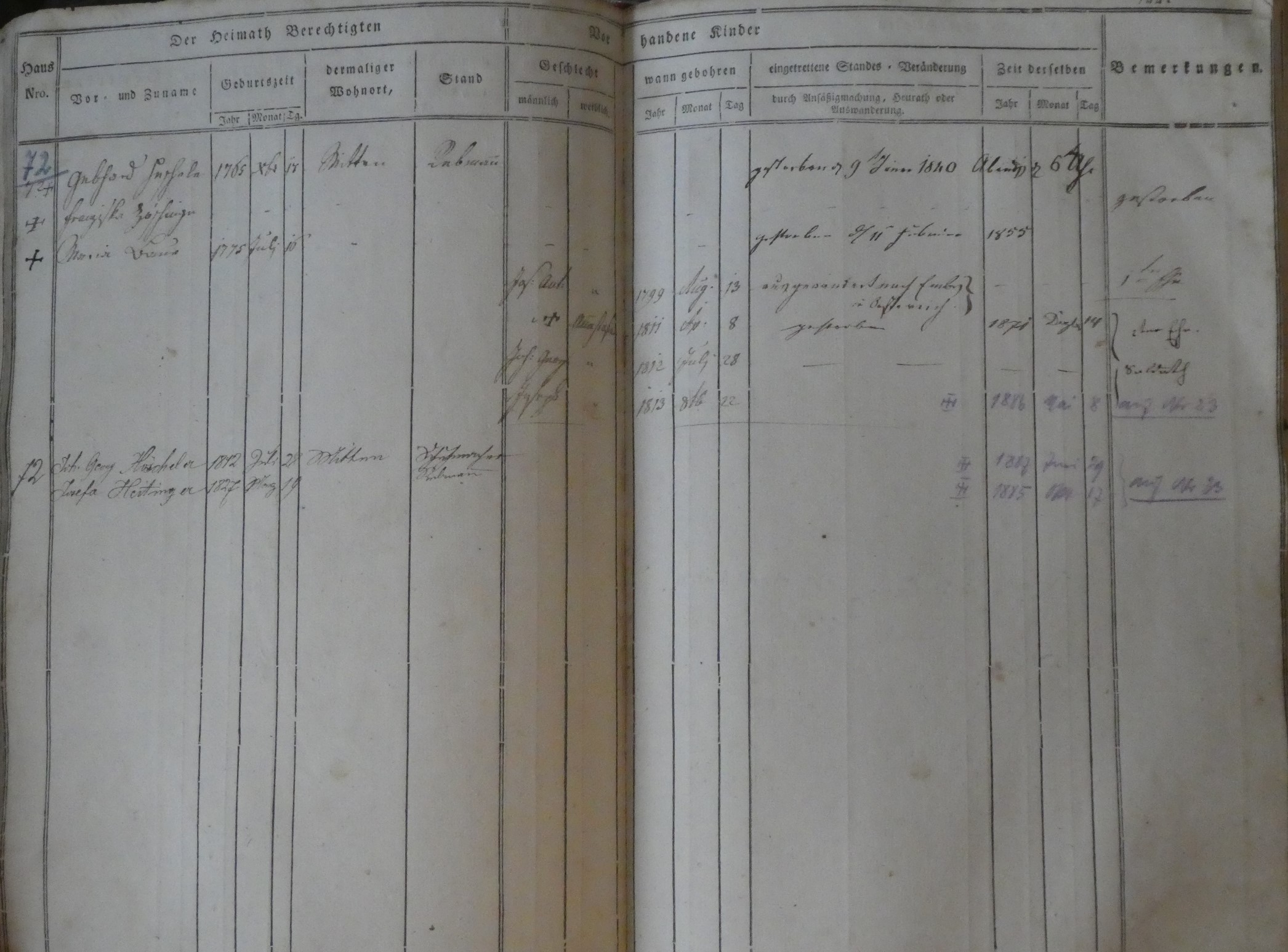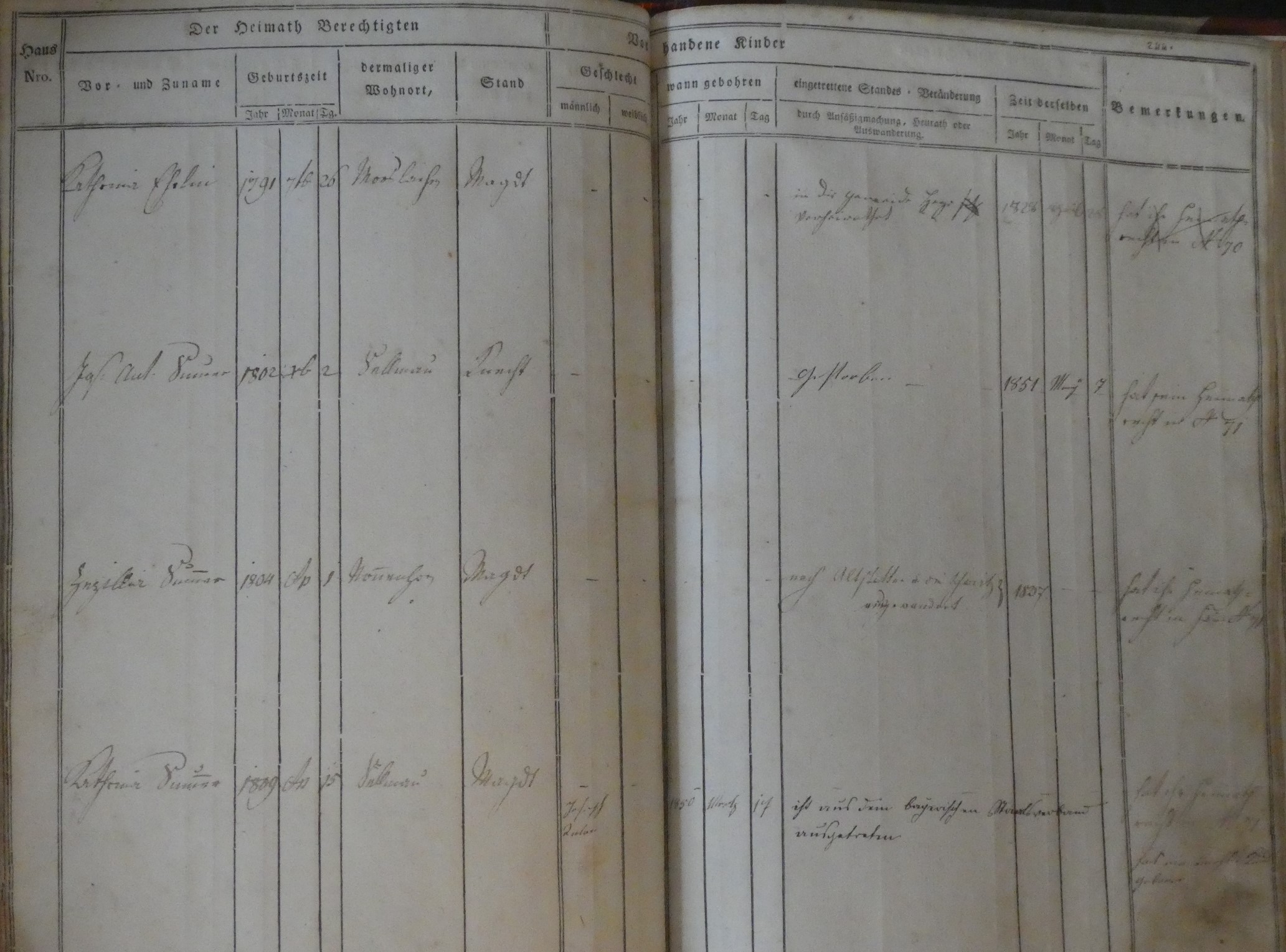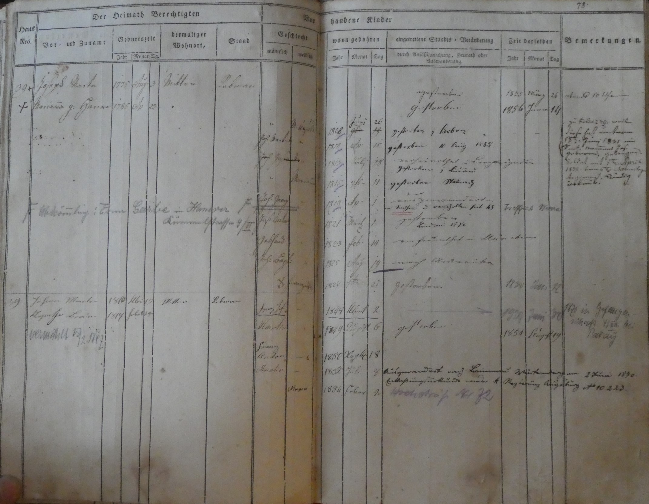 Durch Anklicken der Seitennummer in der 2. Spalte werden die Orginalseiten des Familienstandesbuchs