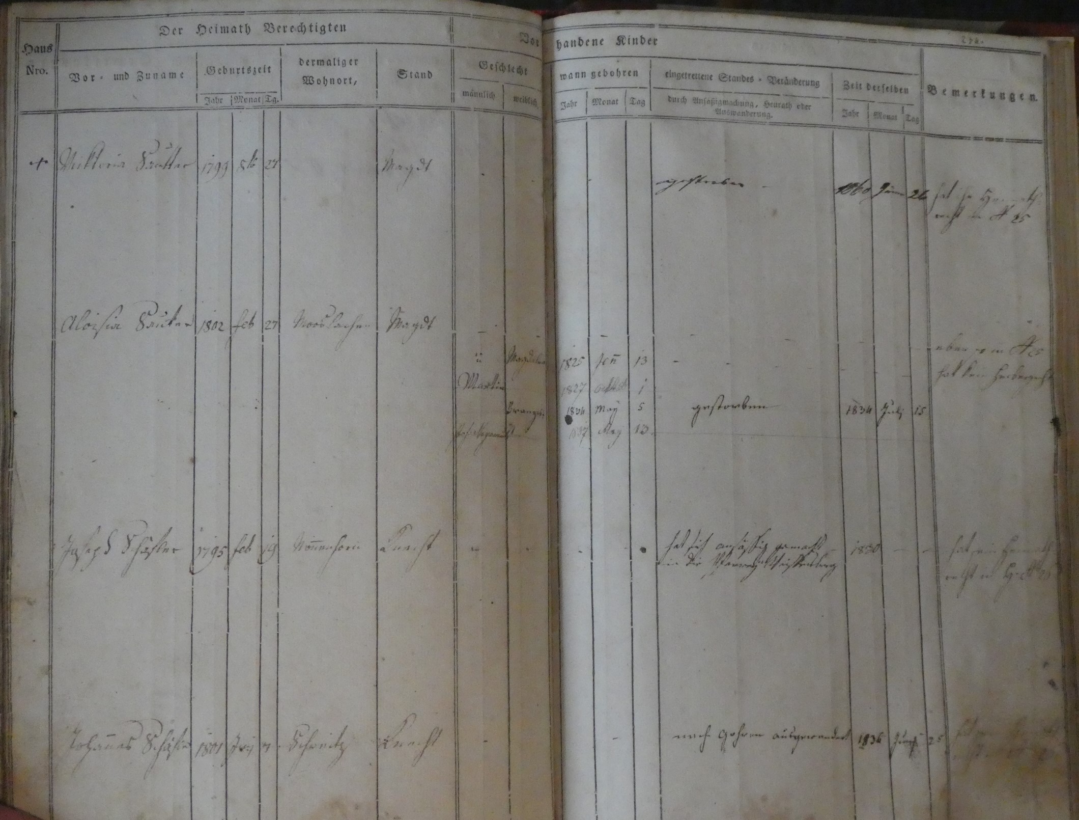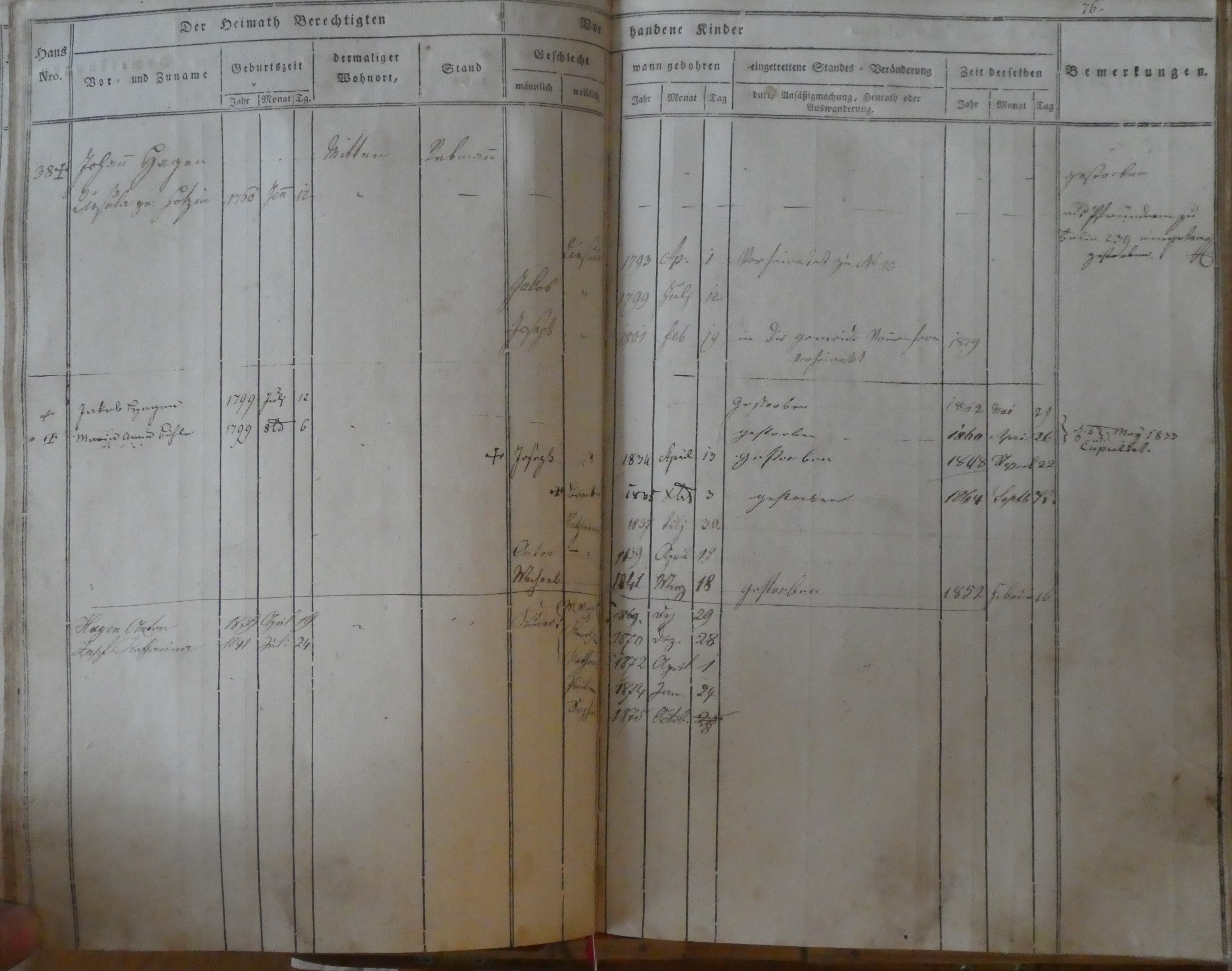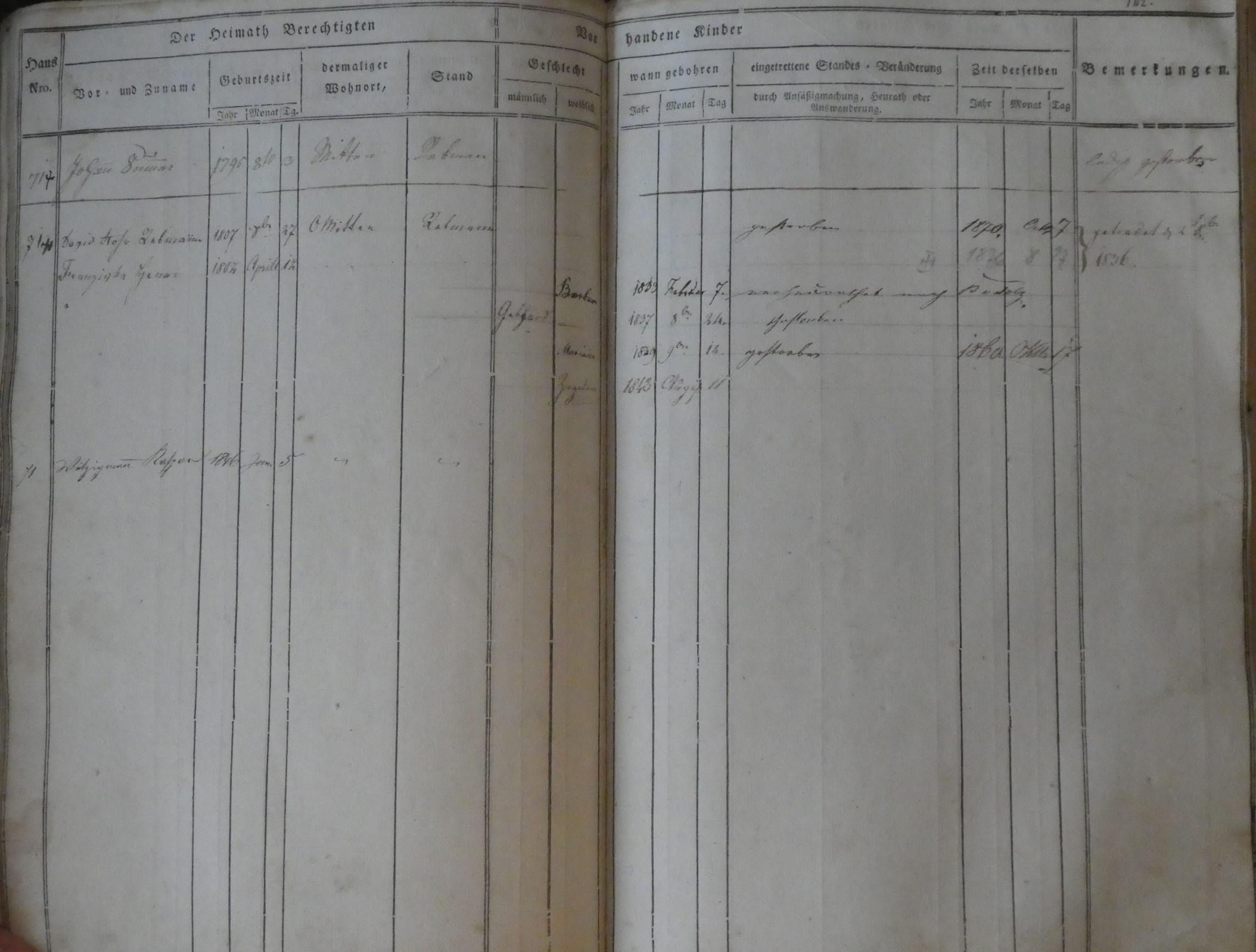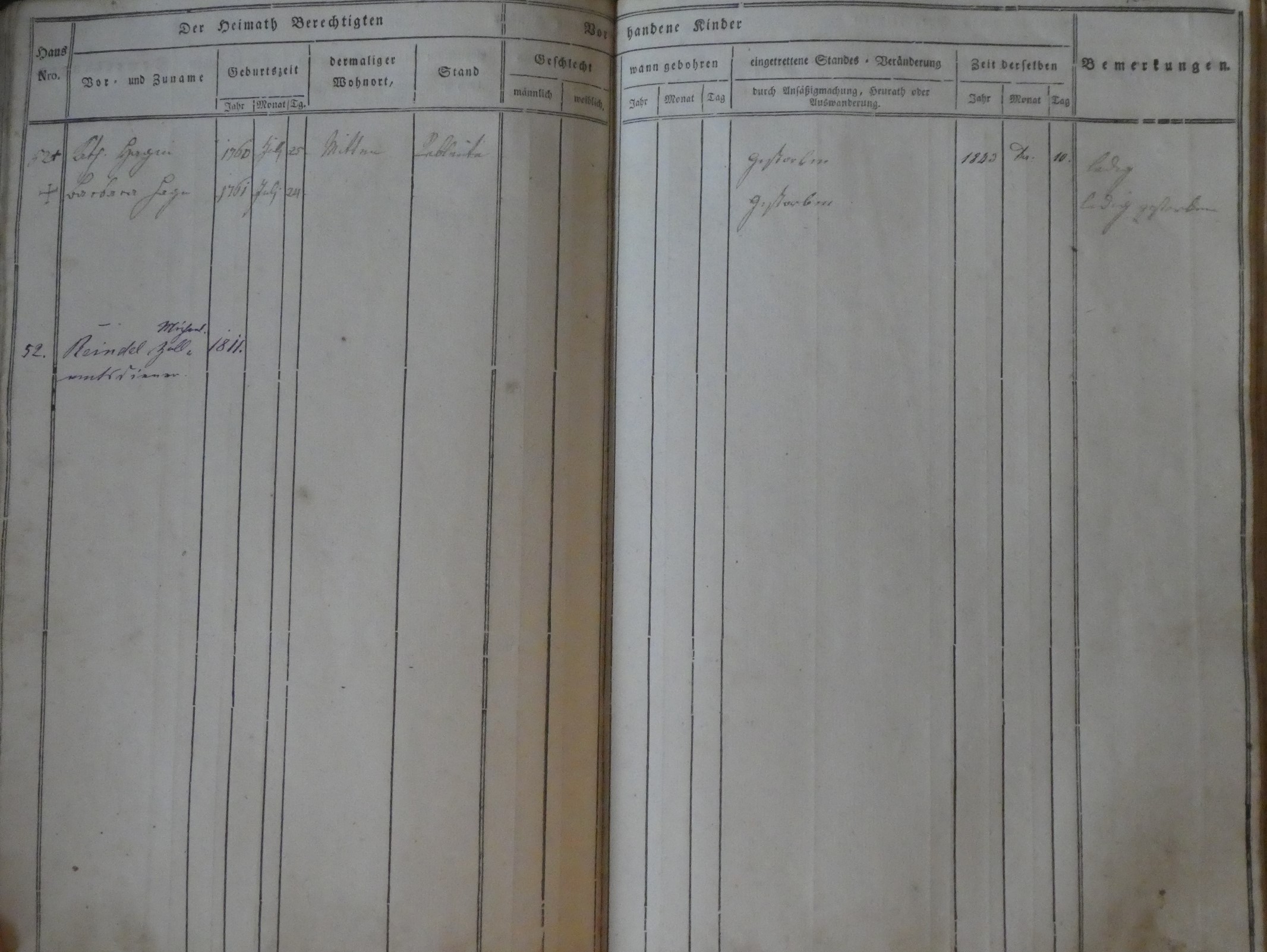Durch Anklicken der Seitennummer in der 2. Spalte werden die Orginalseiten des Familienstandesbuchs