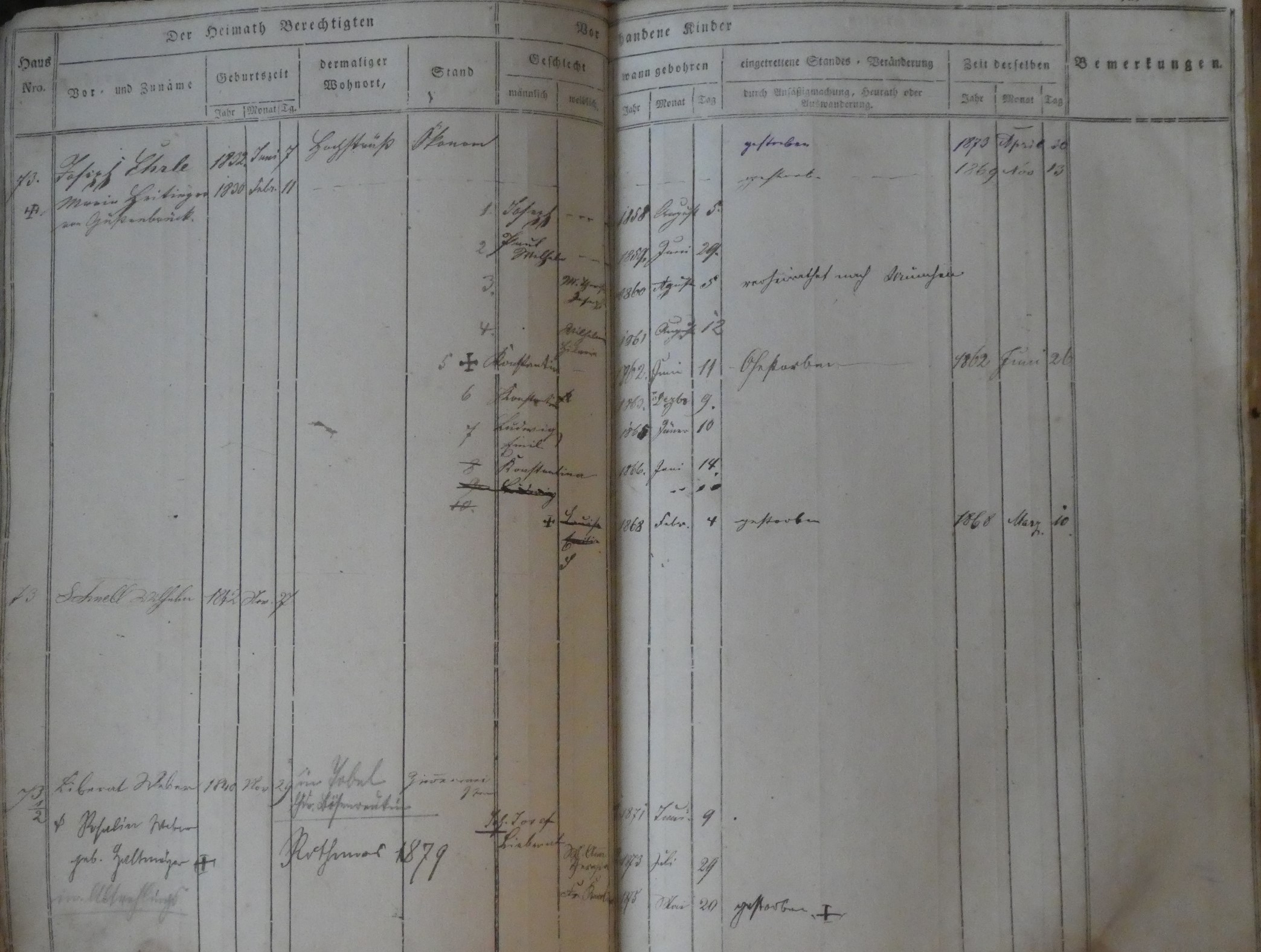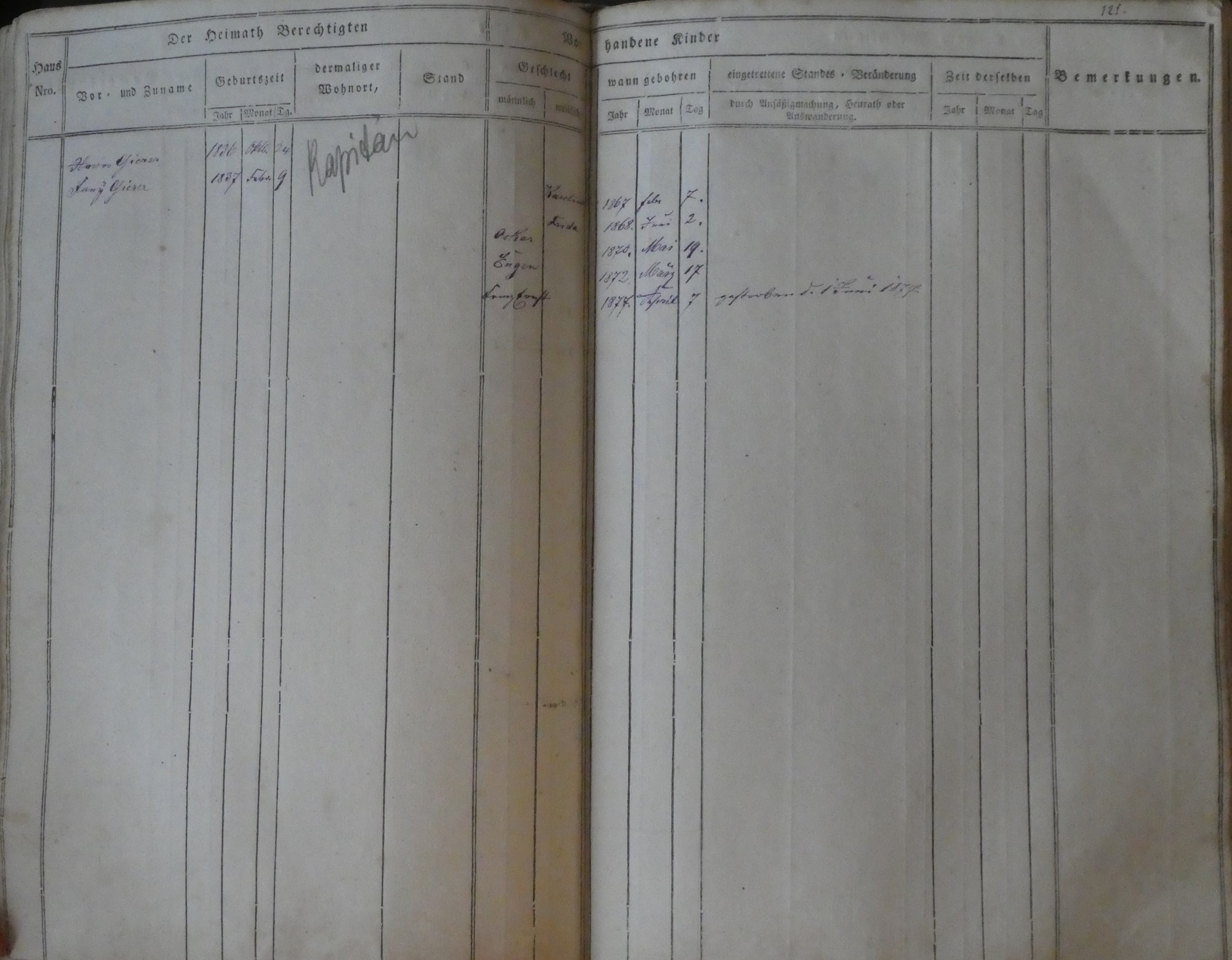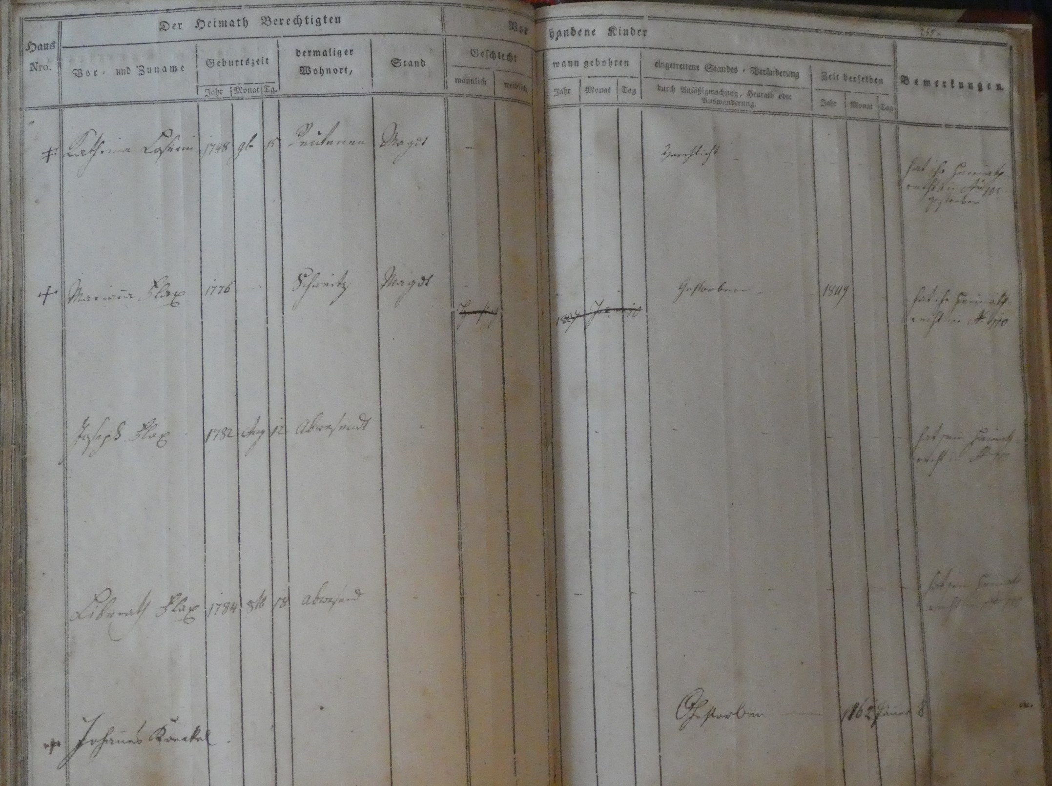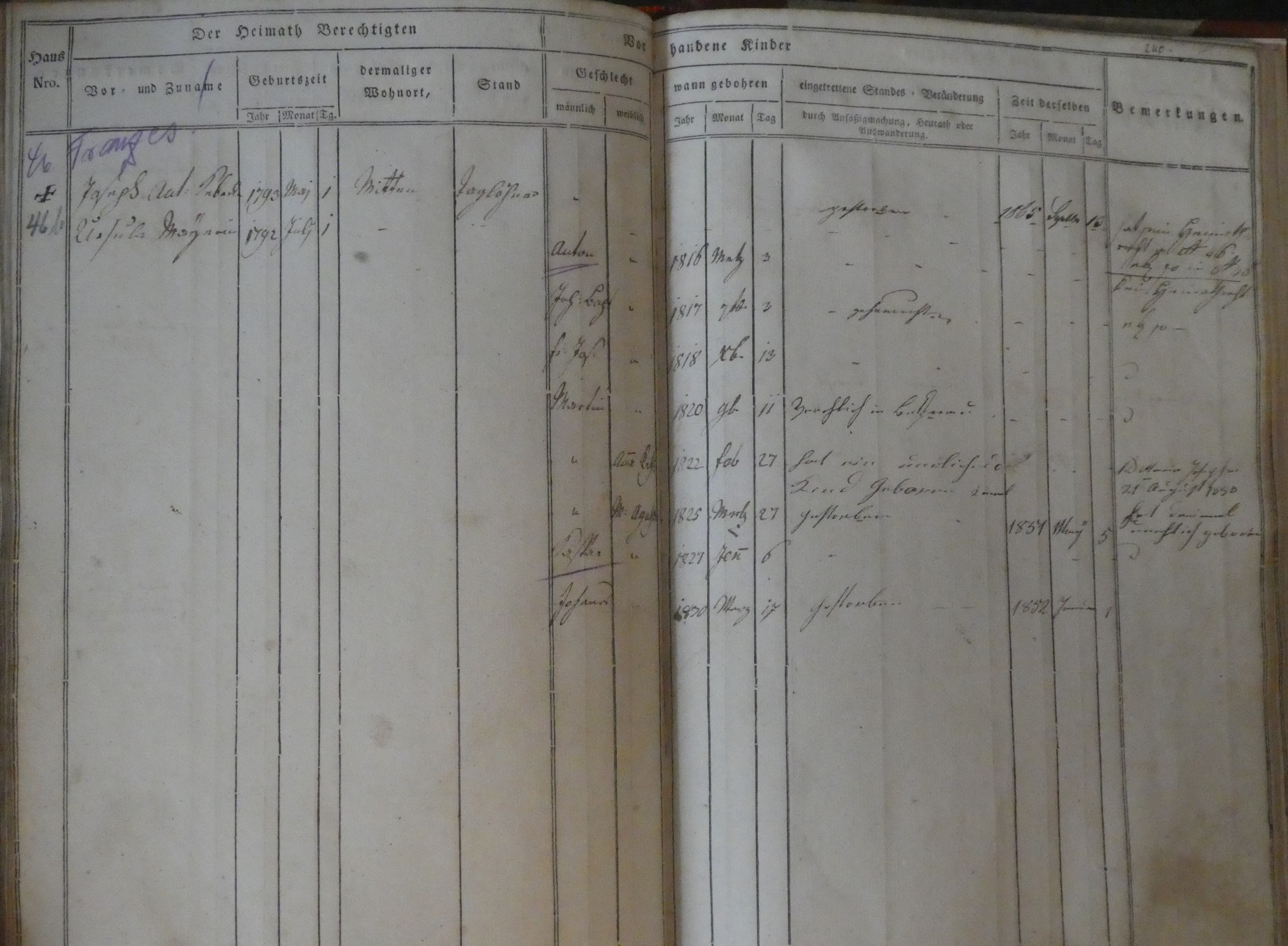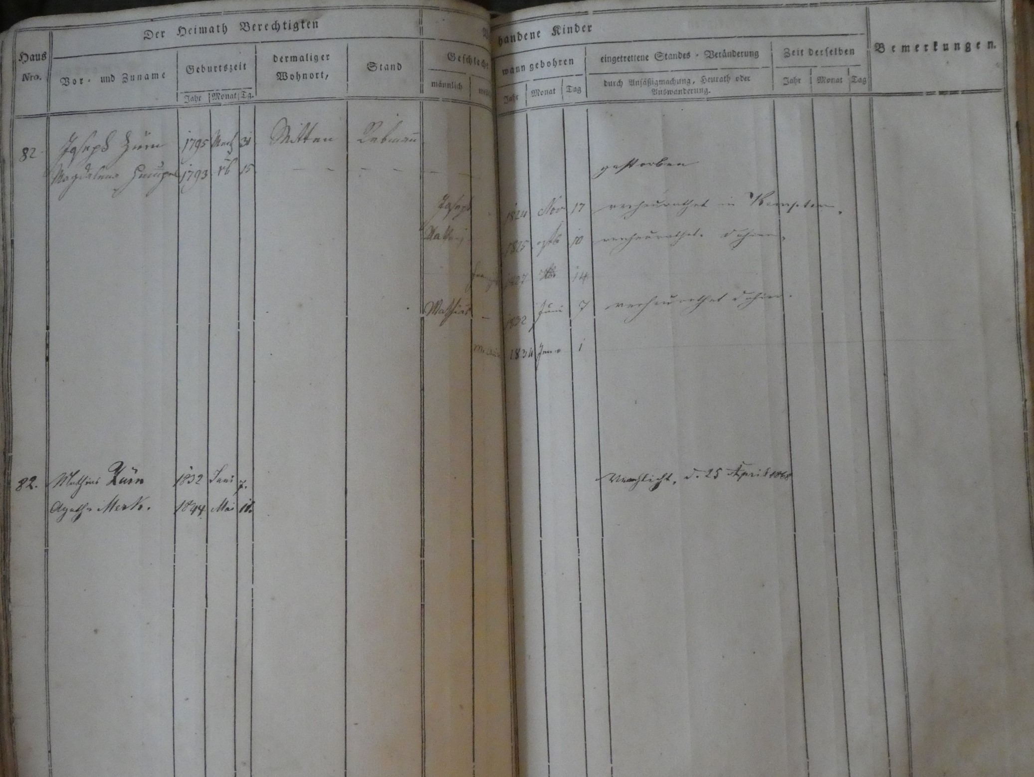 Durch Anklicken der Seitennummer in der 2. Spalte werden die Orginalseiten des Familienstandesbuchs