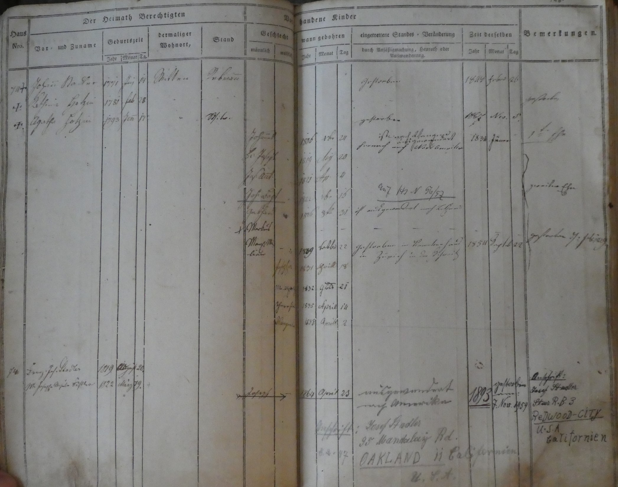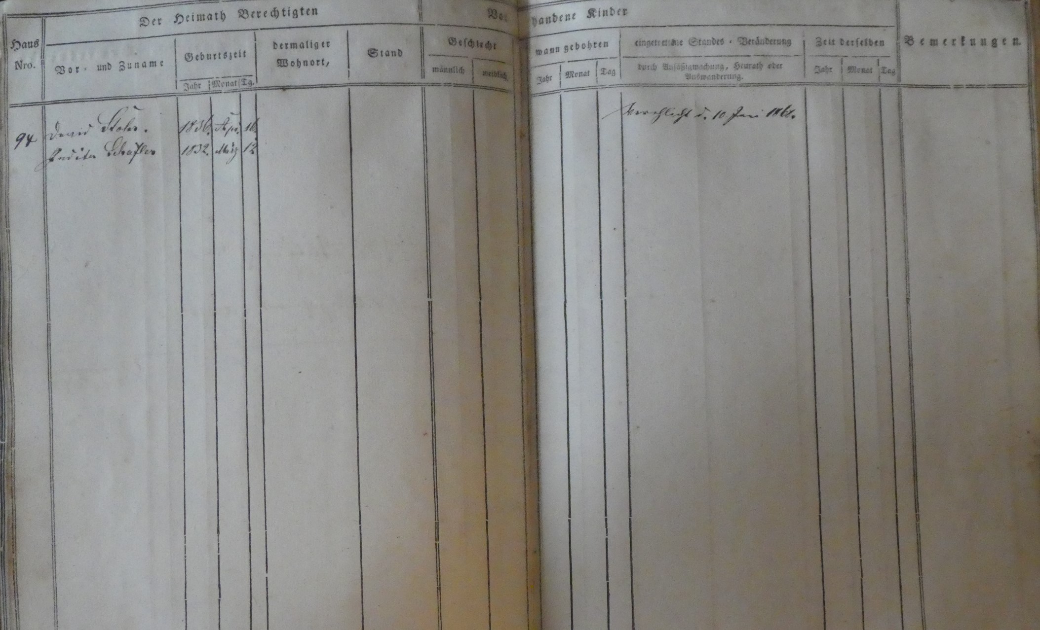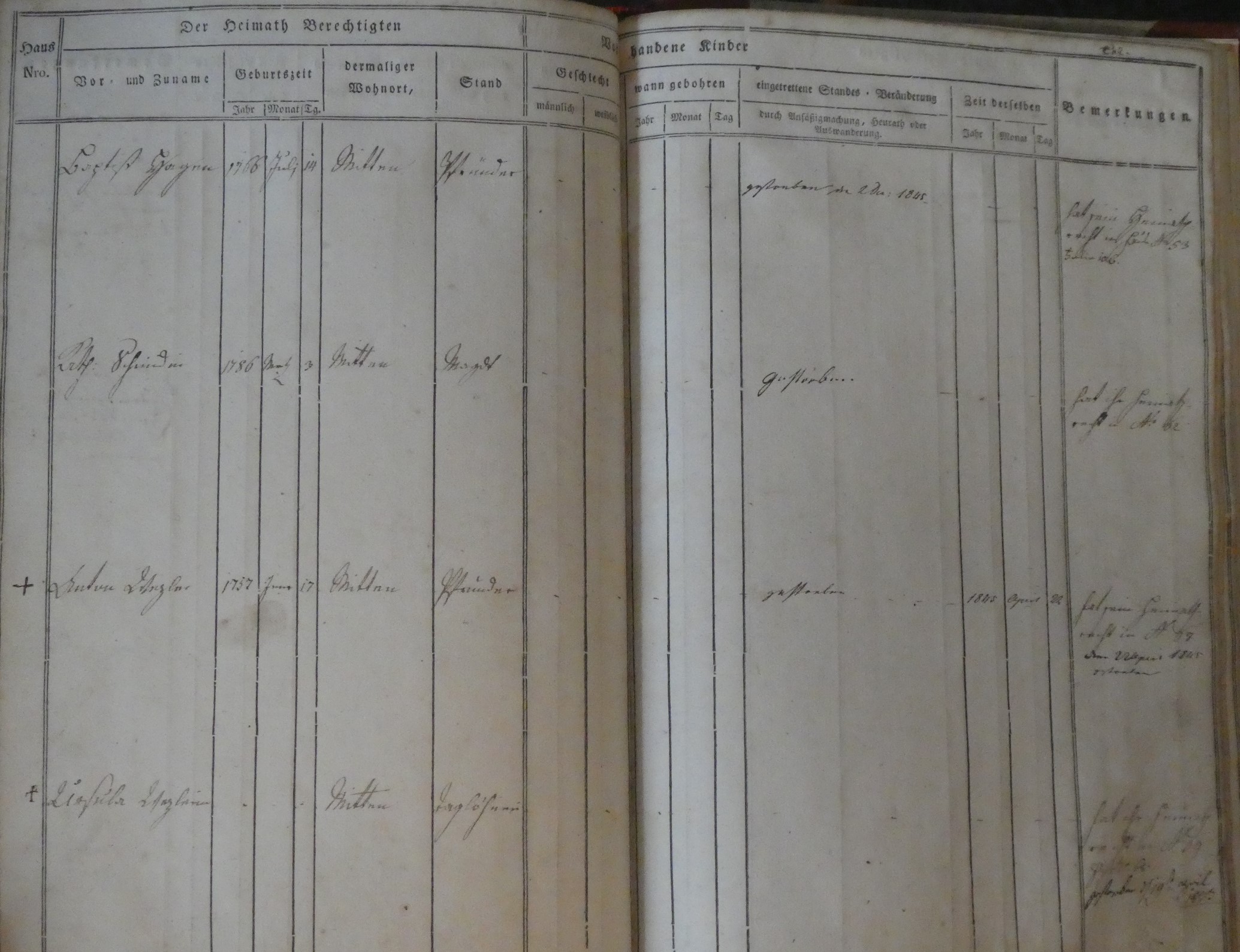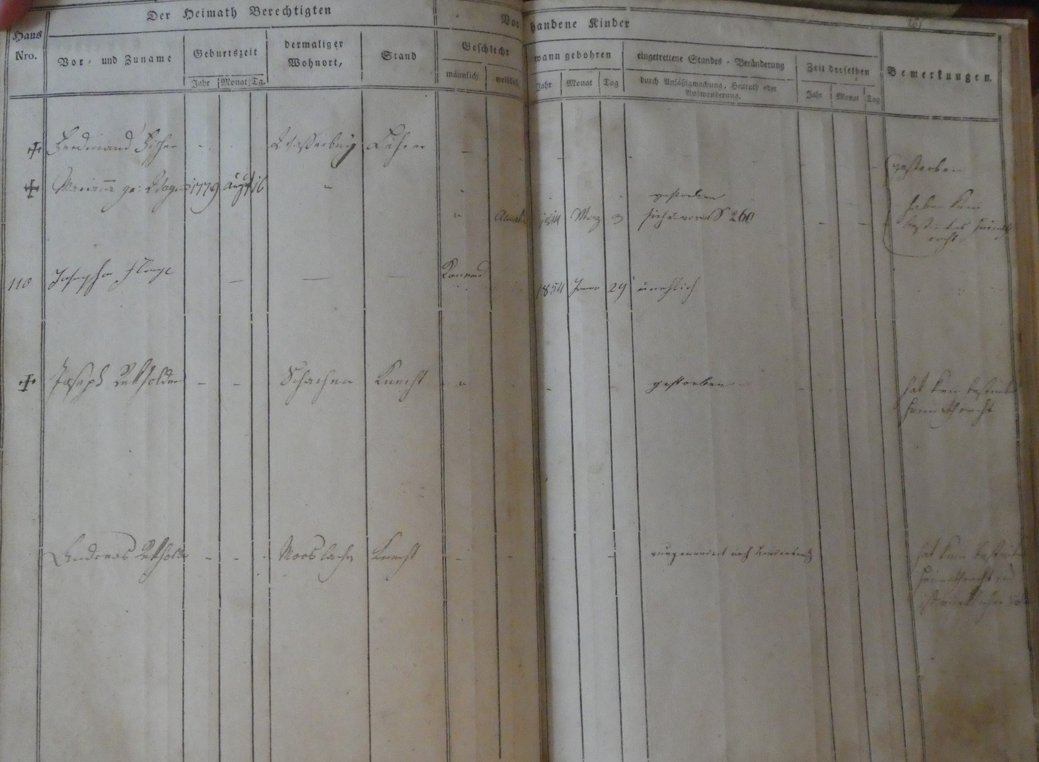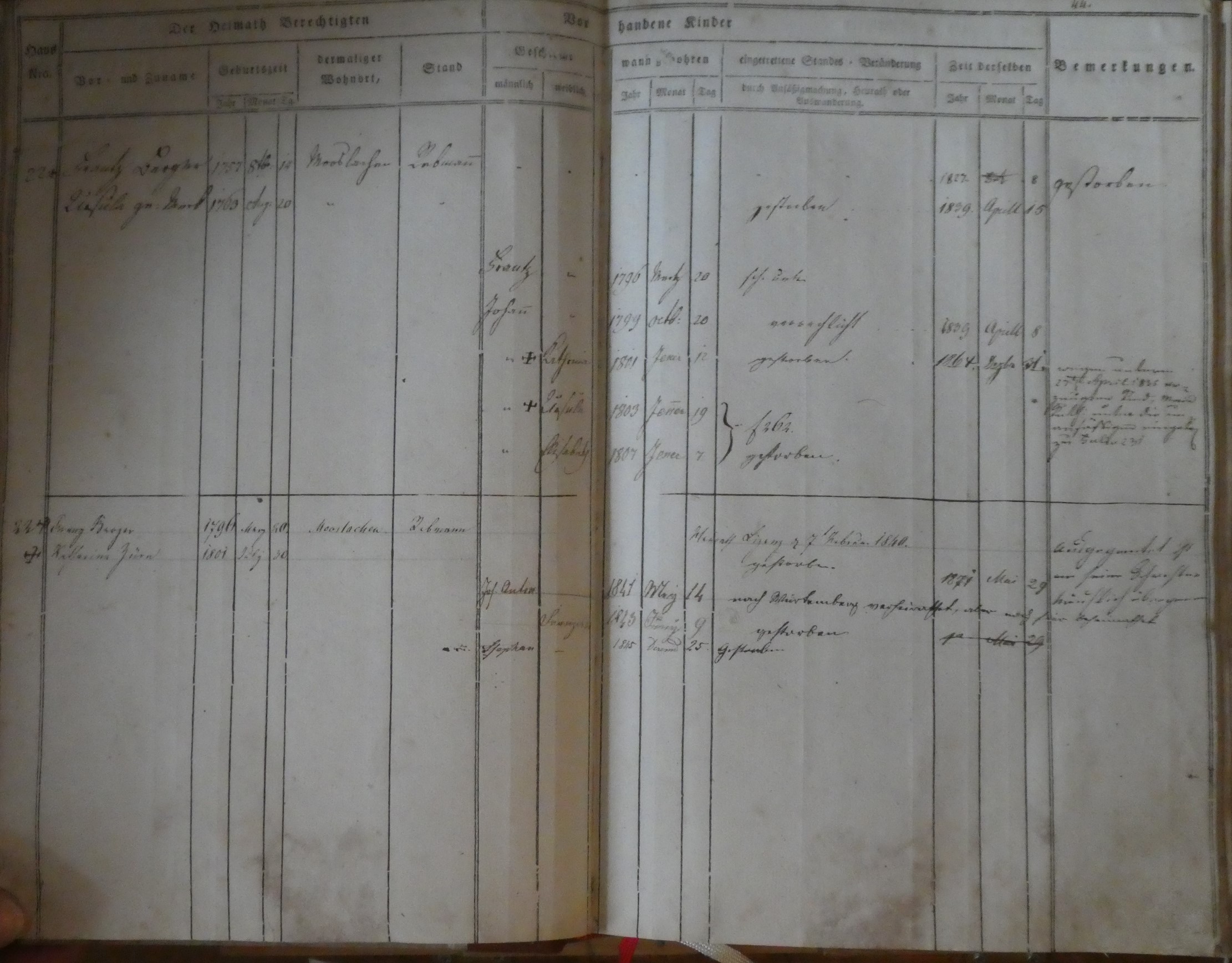 Durch Anklicken der Seitennummer in der 2. Spalte werden die Orginalseiten des Familienstandesbuchs