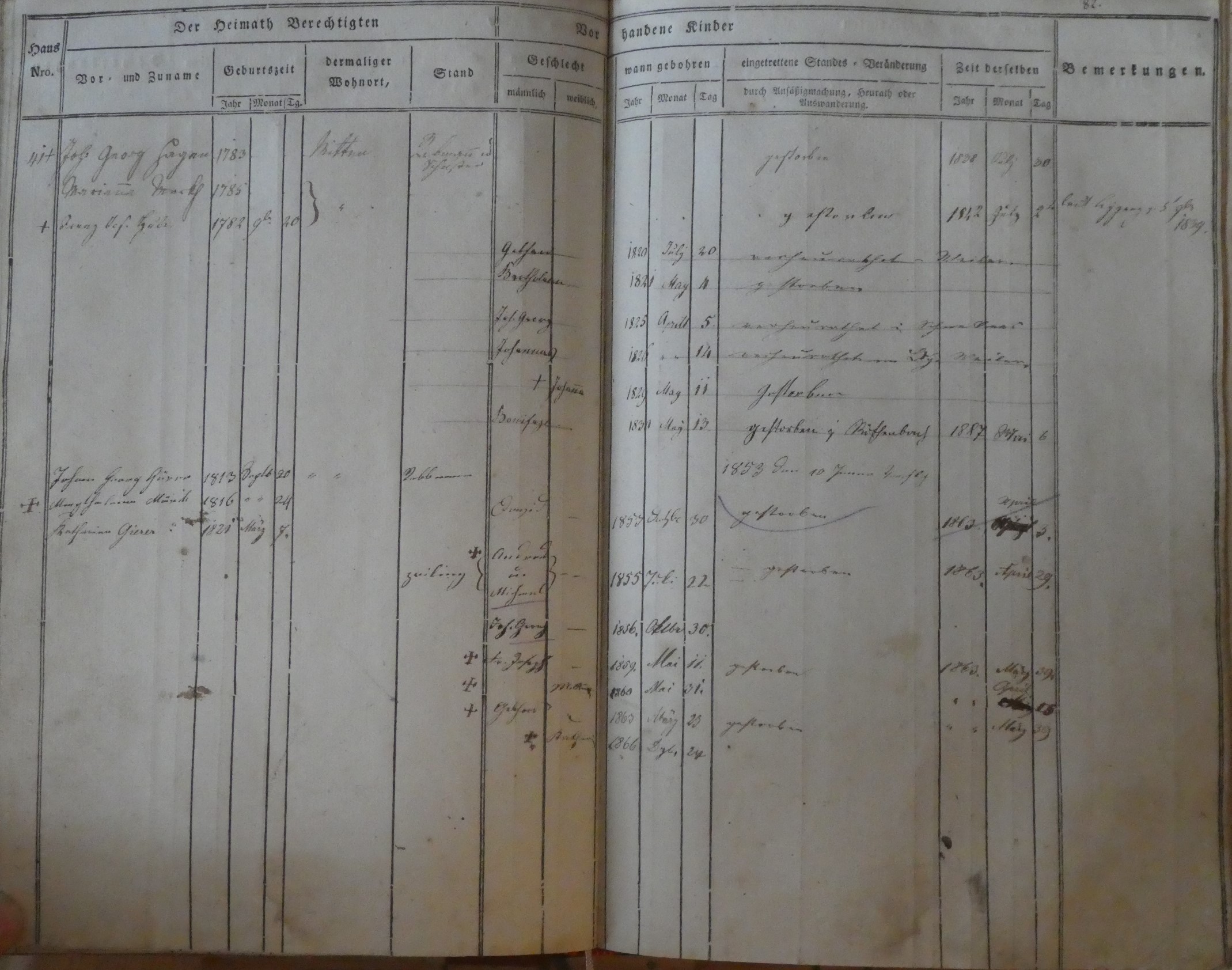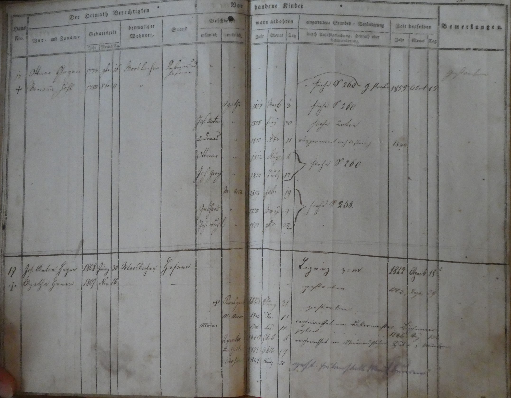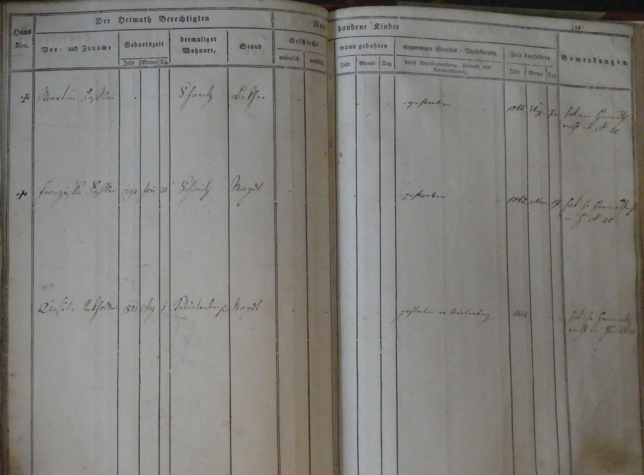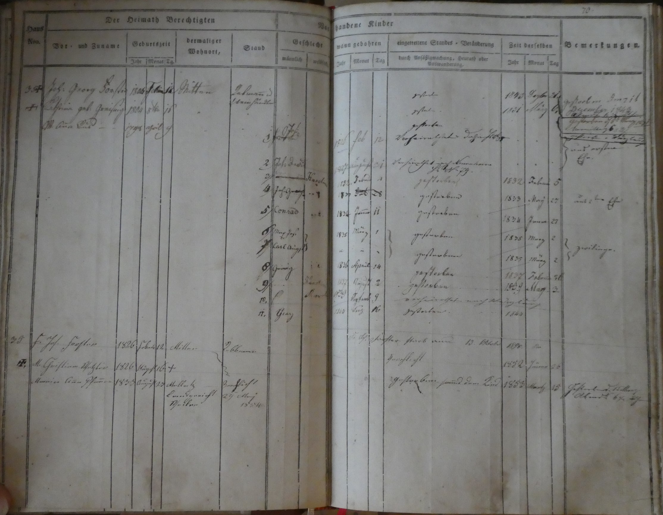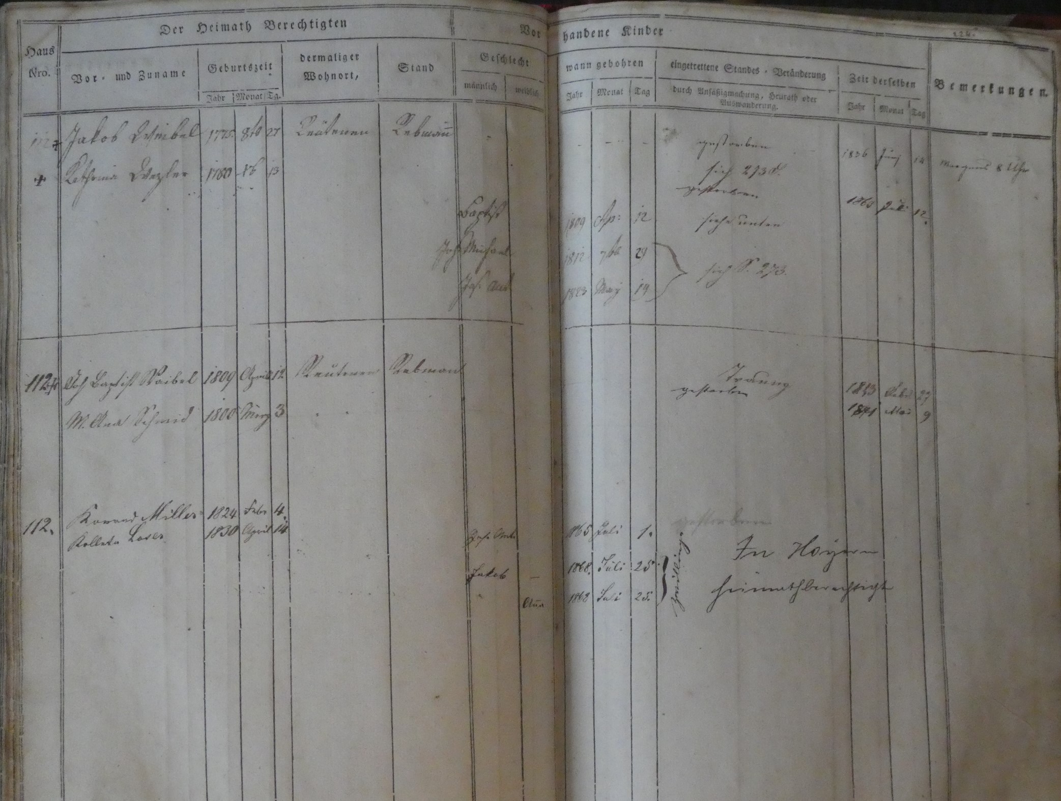 Durch Anklicken der Seitennummer in der 2. Spalte werden die Orginalseiten des Familienstandesbuchs