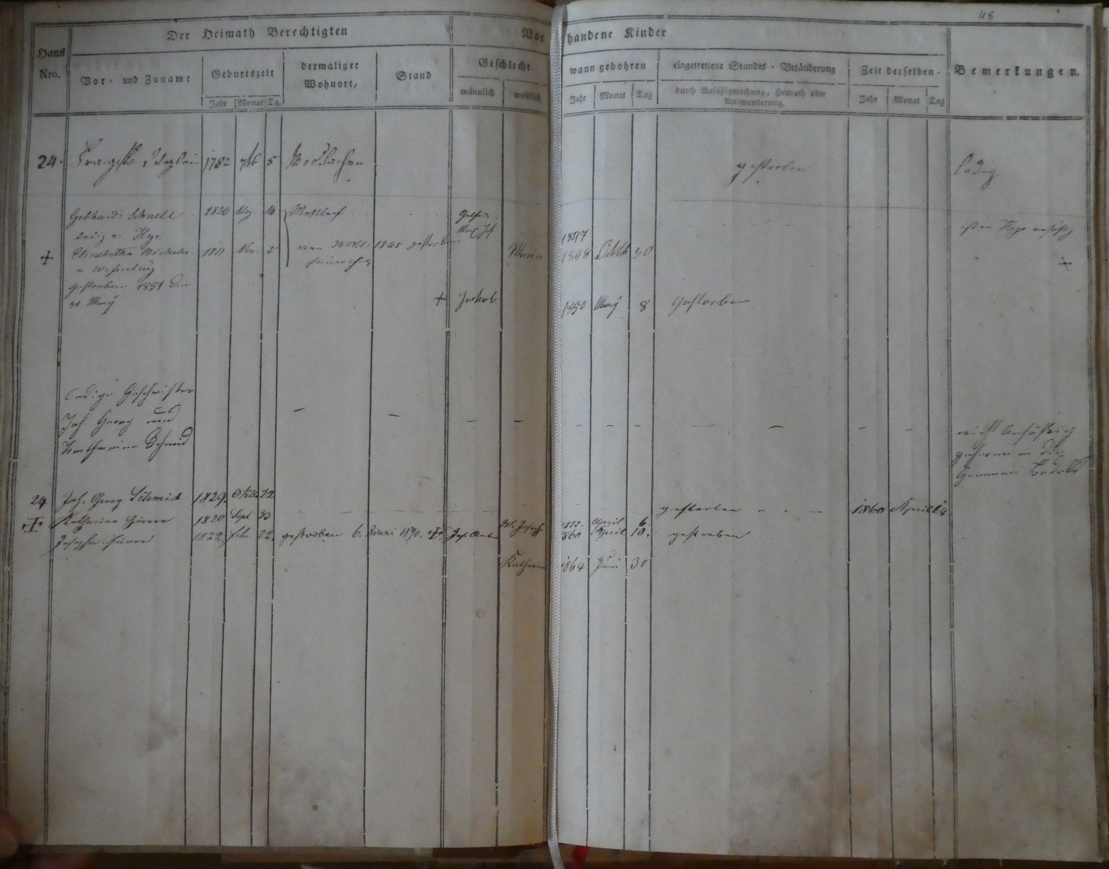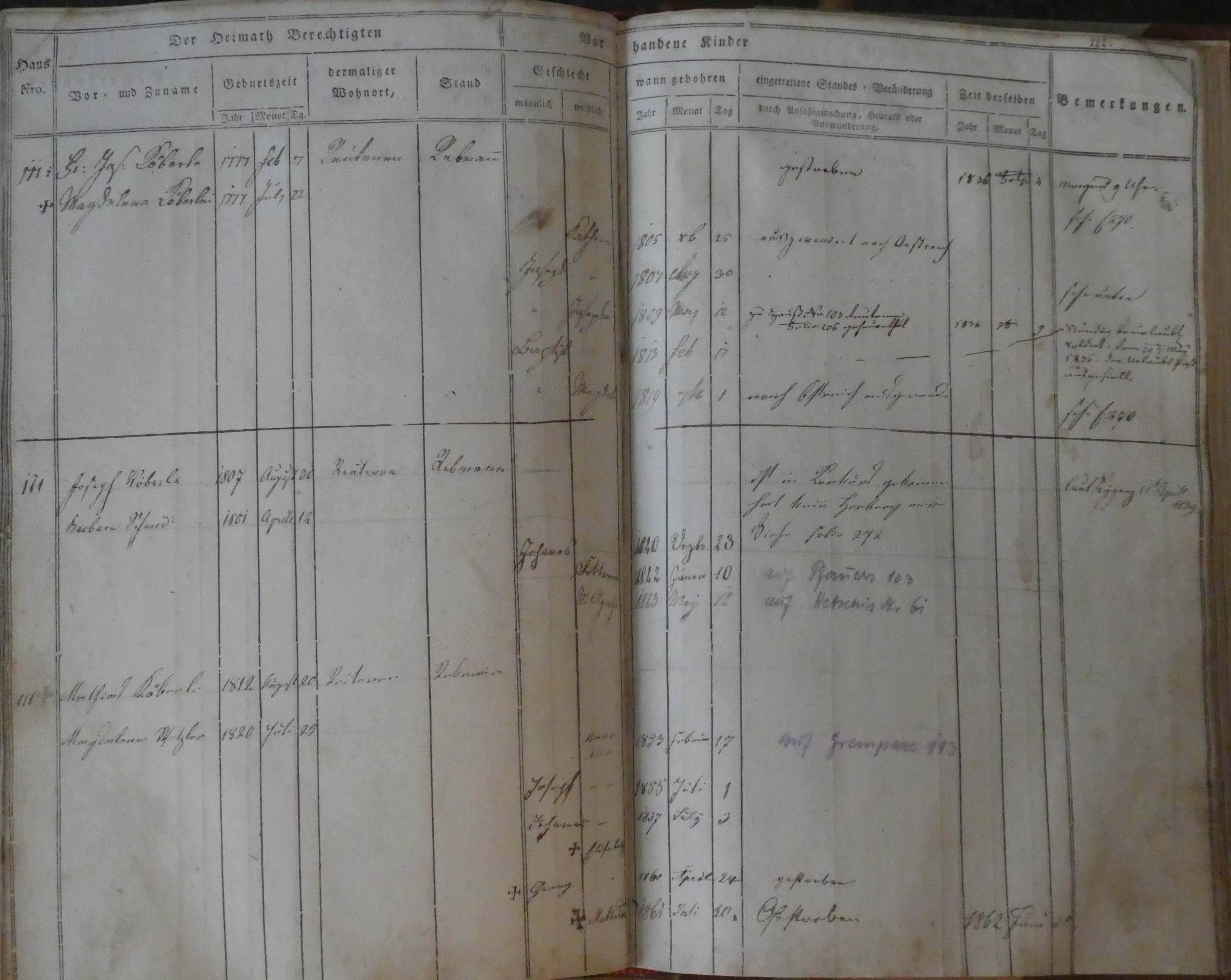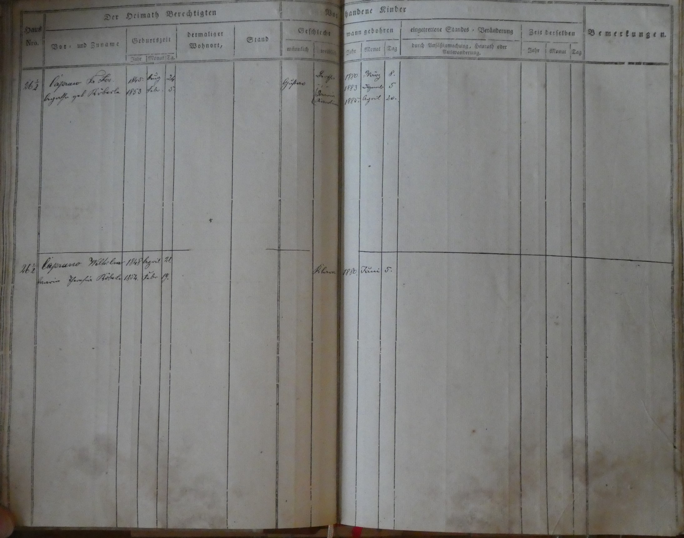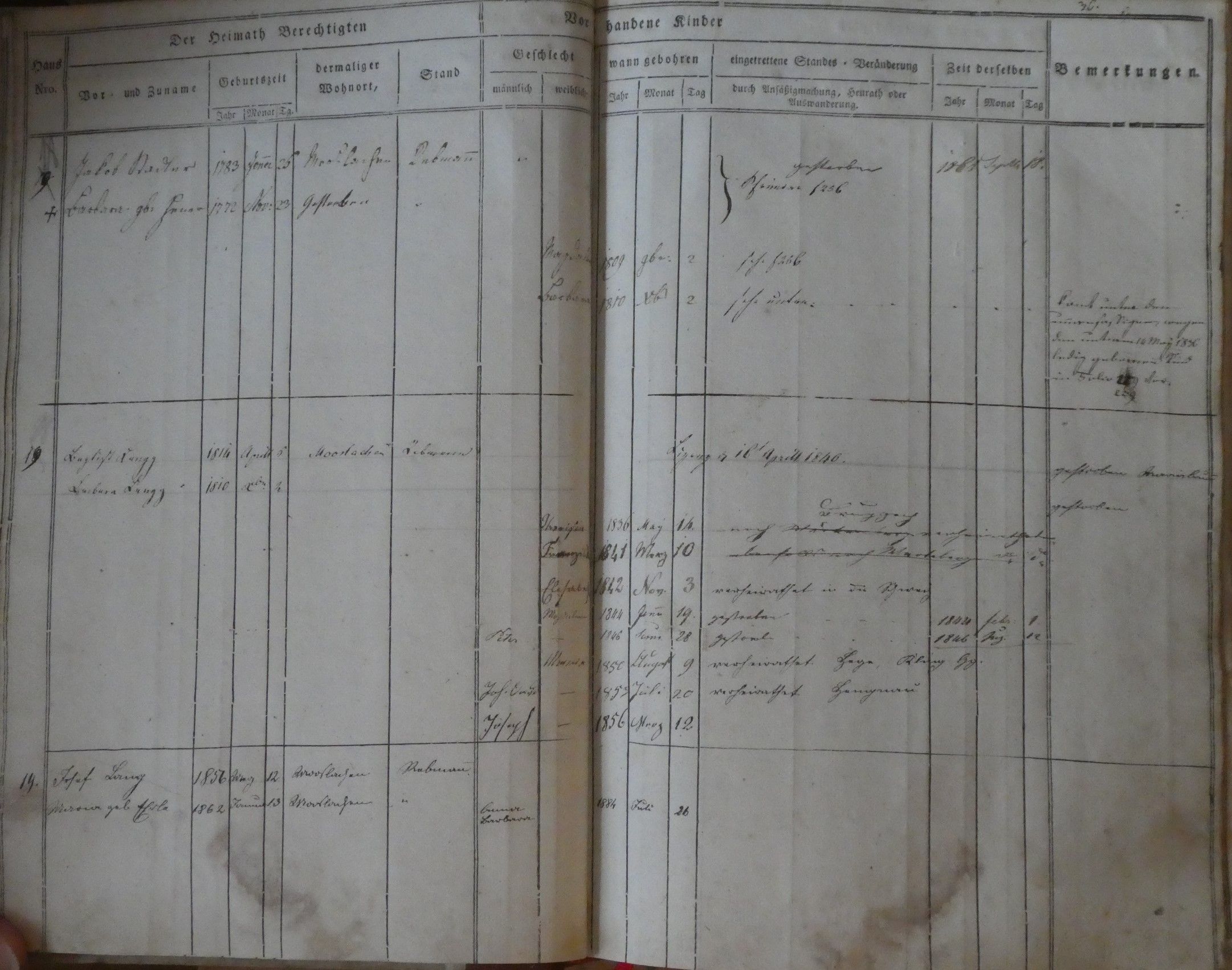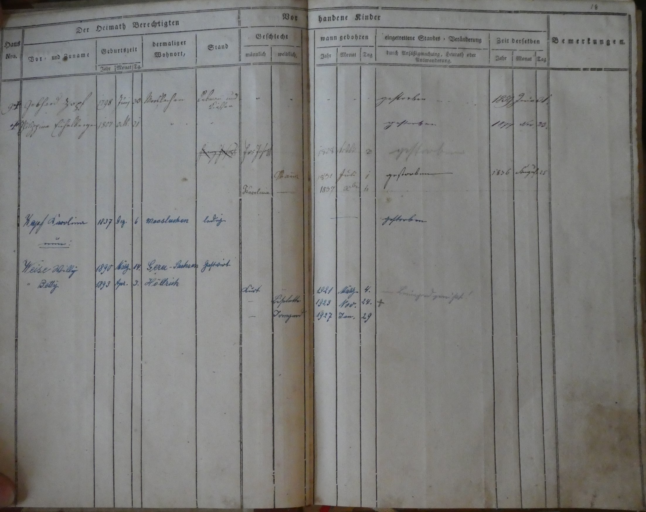 Durch Anklicken der Seitennummer in der 2. Spalte werden die Orginalseiten des Familienstandesbuchs