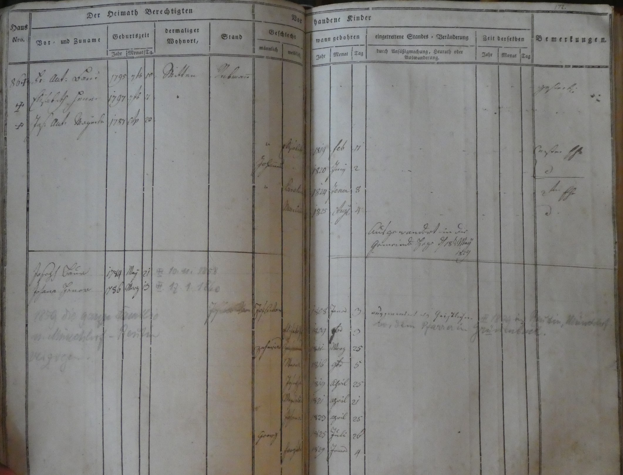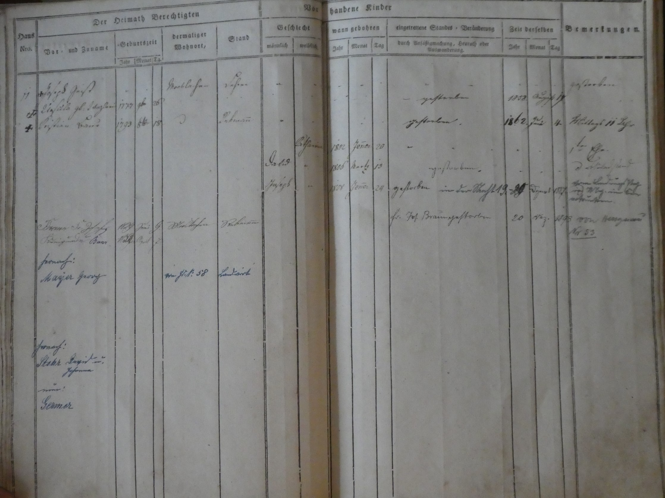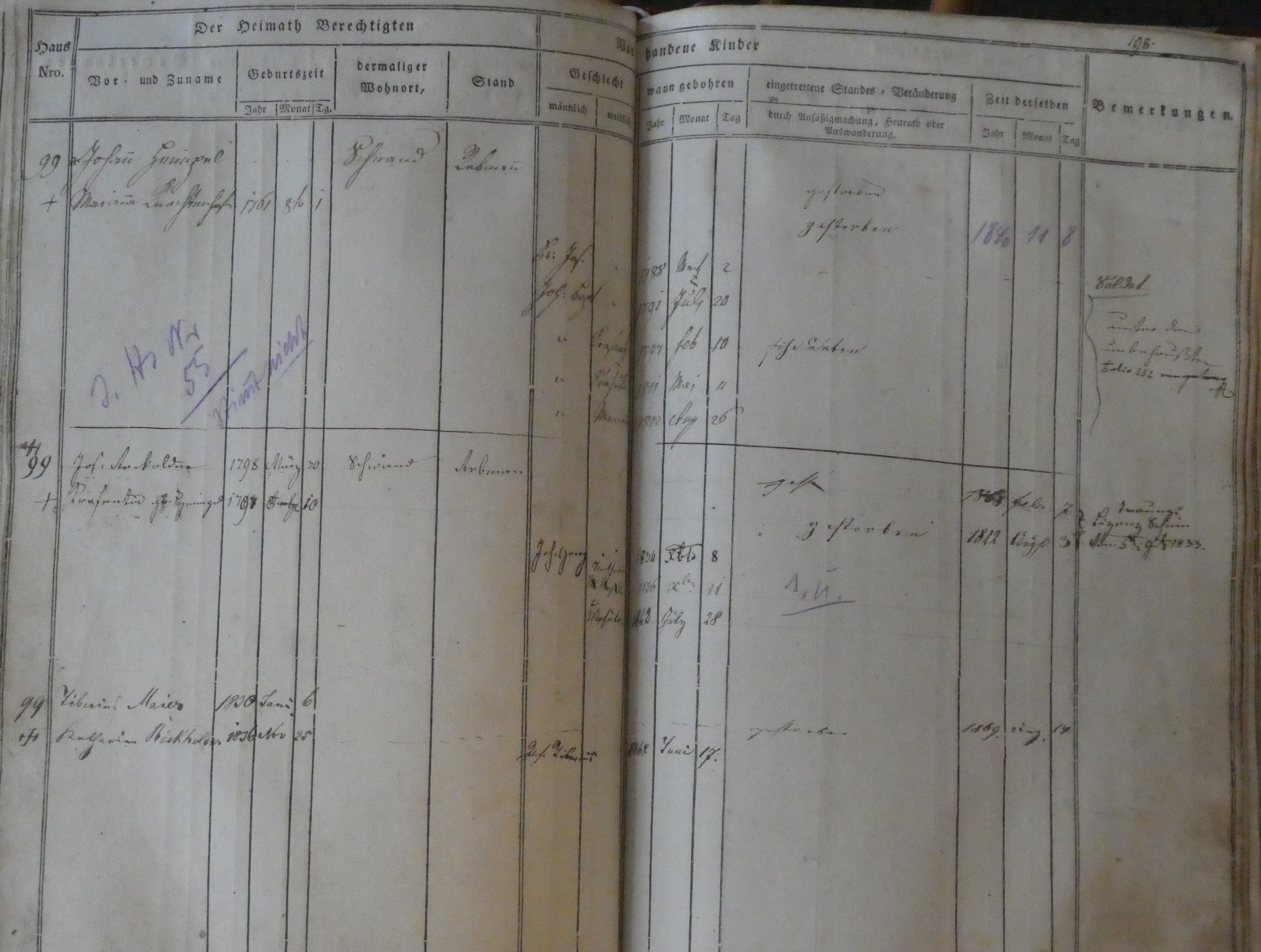 | Haus Nr. | Seite Nr. | Besitzer 1821-1825 | Hausname mundartlich | heutige Anschrift | Bemerkungen |