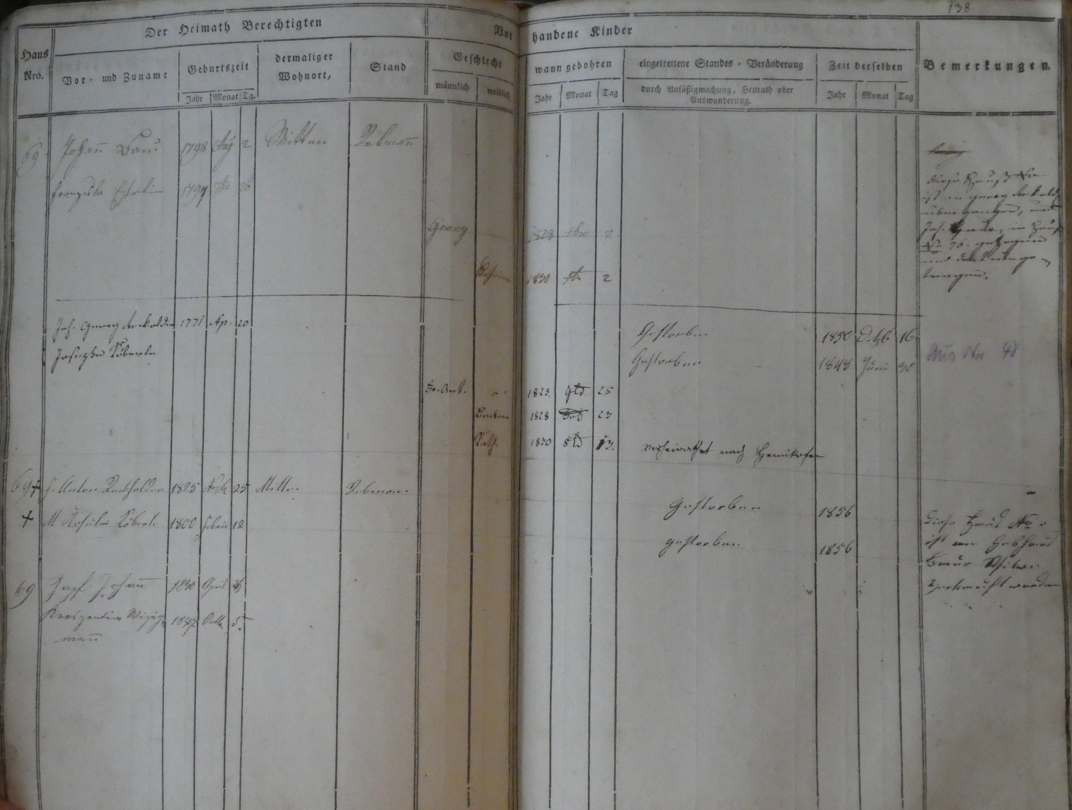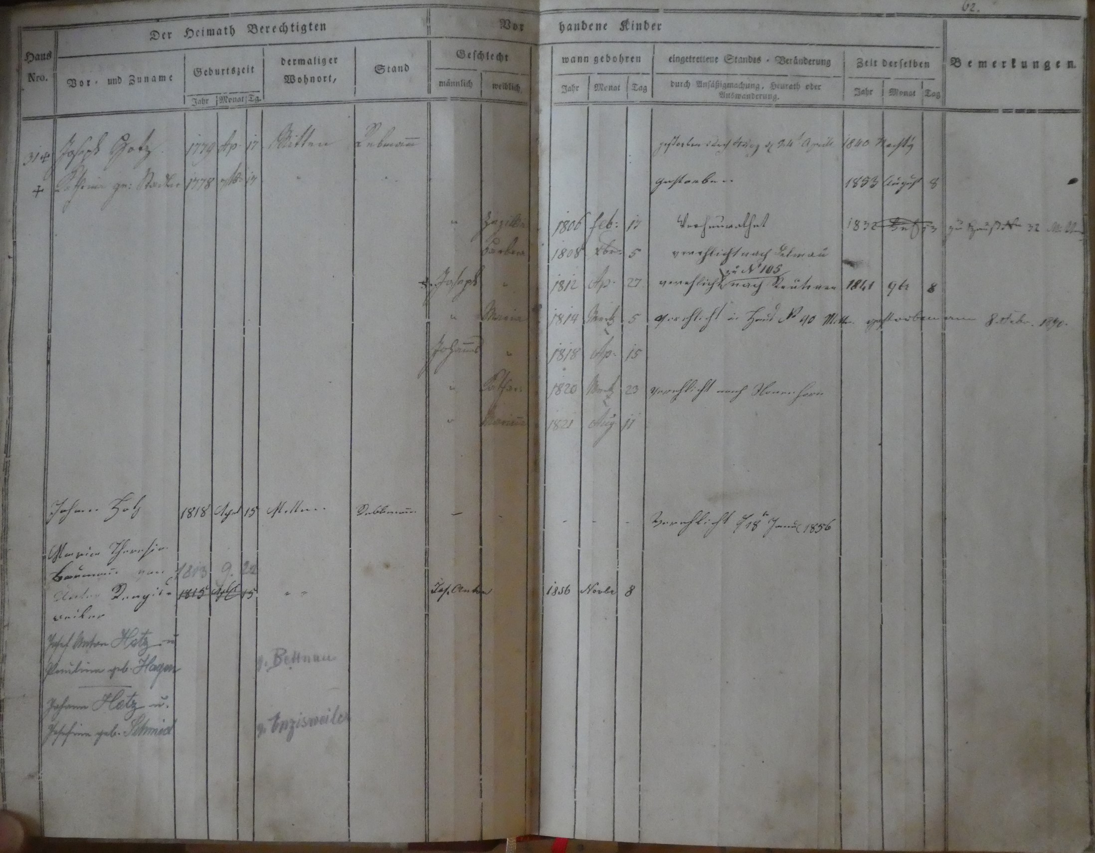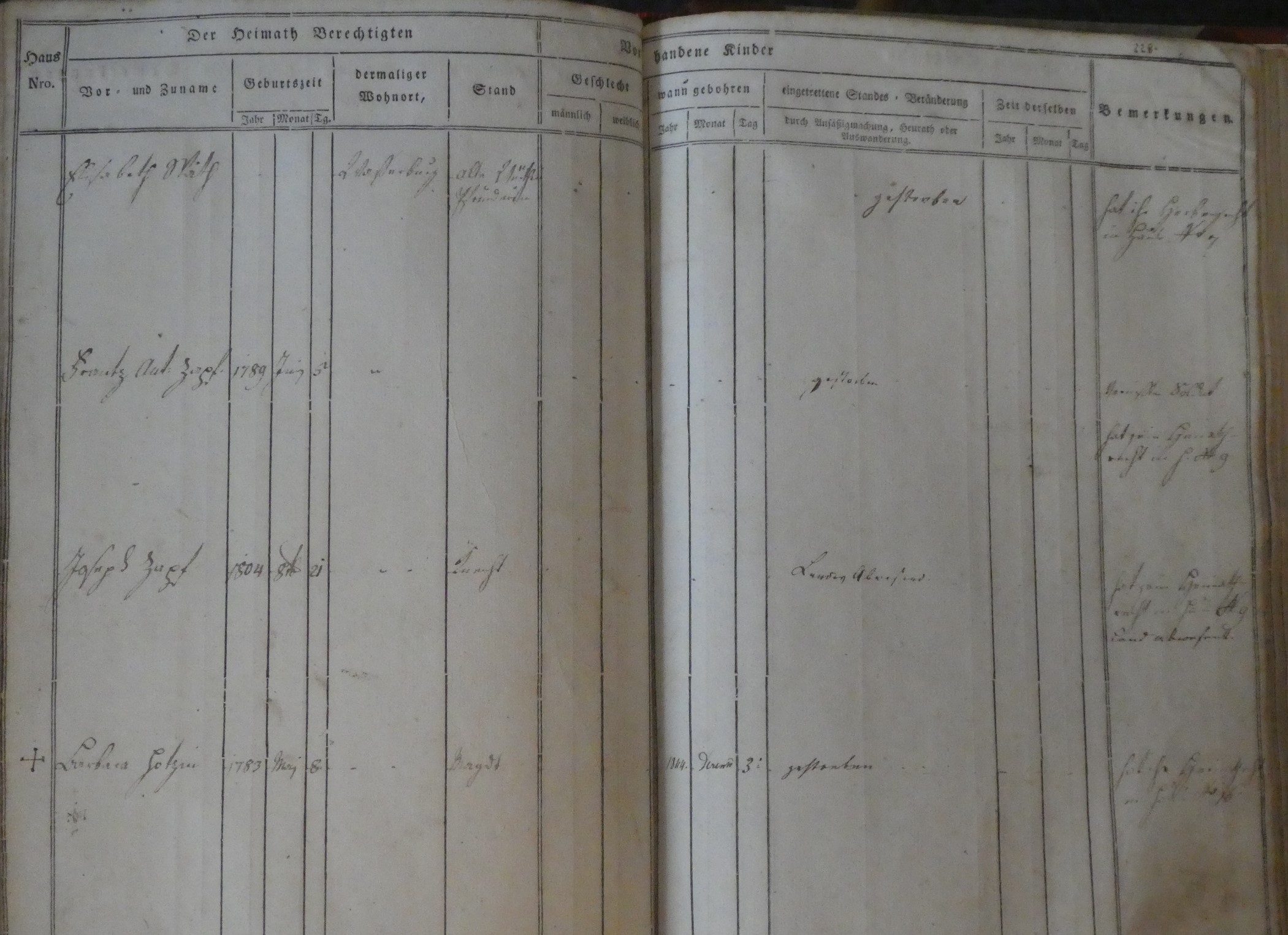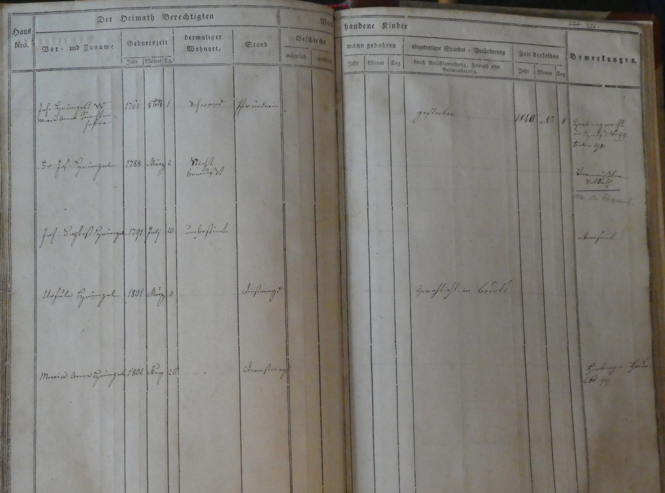| Haus Nr. | Seite Nr. | Besitzer 1821-1825 | Hausname mundartlich | heutige Anschrift | Bemerkungen |